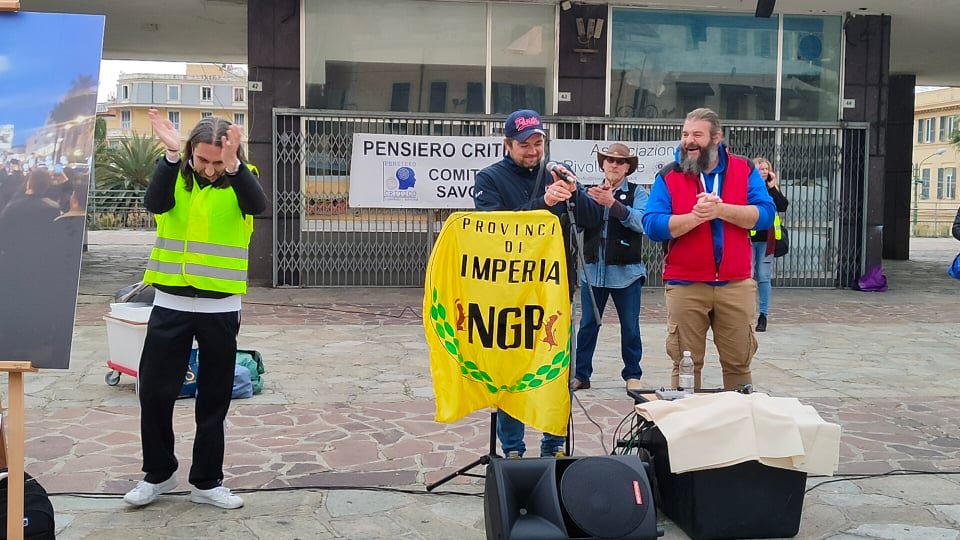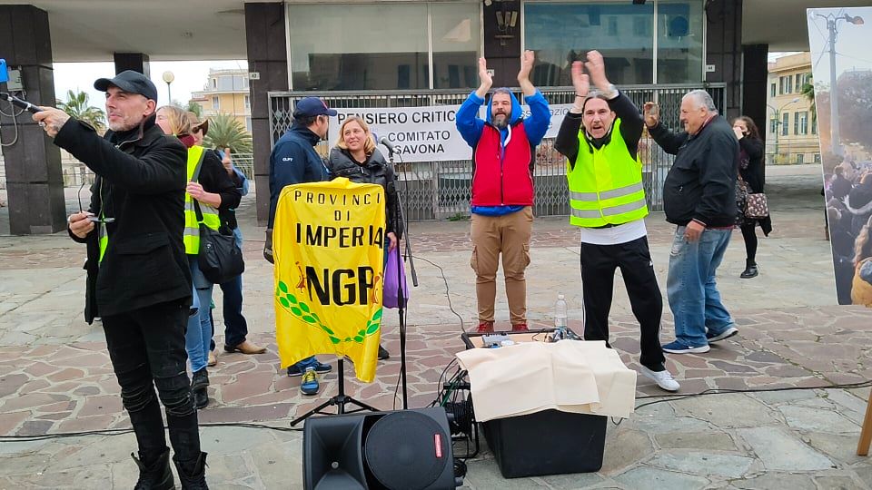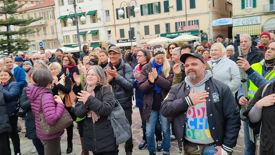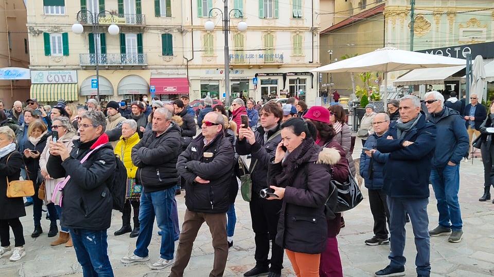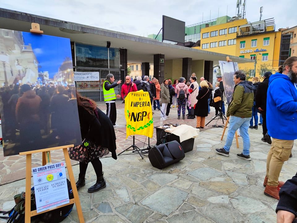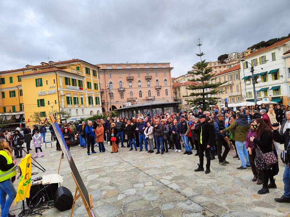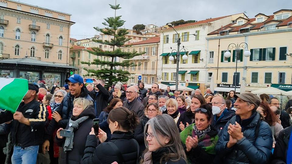 Oltre 200 persone hanno preso parte a Sanremo alla manifestazione organizzata in piazza Colombo da Rivoluzione etica, No Green Pass provincia di Imperia e Pensiero critico. Ospite d’onore Stefano Puzzer, il lavoratore portuale di Trieste divenuto uno dei leader delle proteste contro le restrizioni legate all’emergenza pandemica.