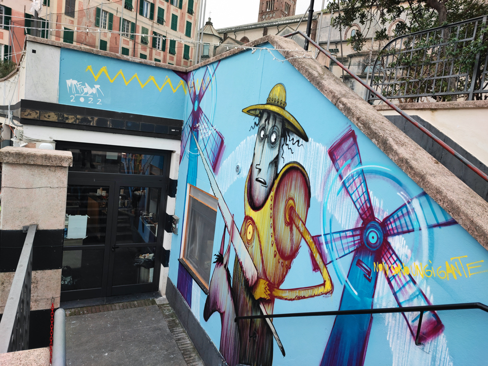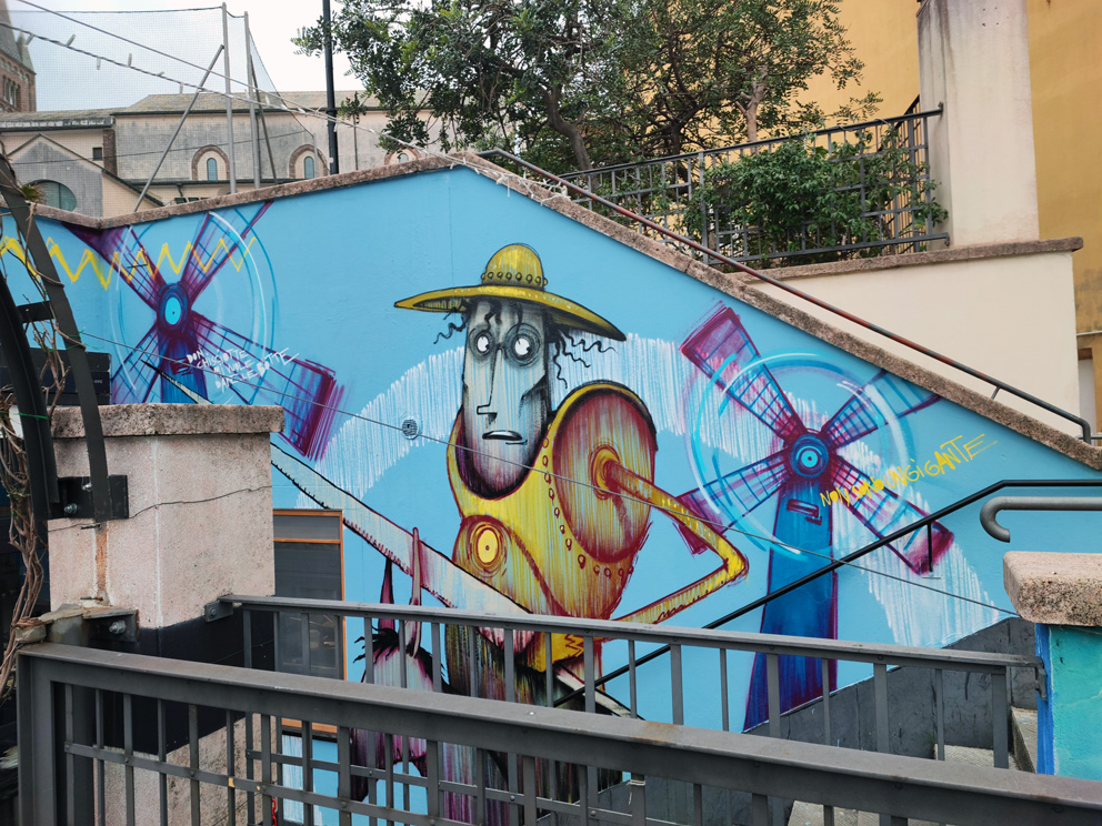 Don Chisciotte ai Giardini Luzzati di Genova. È questa l’ultima opera dello street artist impirese Fijodor Benzo, in arte MrFijodor.