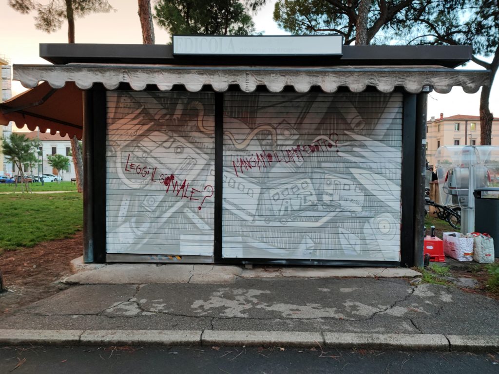 Si tratta dell’ultimo di una serie di lavori realizzati da MrFijodor in giro per l’Italia negli ultimi mesi. A dicembre ha partecipato al progetto “Alfabeto Urbano” a Firenze, insieme all’illustratore Urto, ispirandosi ai segni della punteggiatura per decorare quattro chioschi.