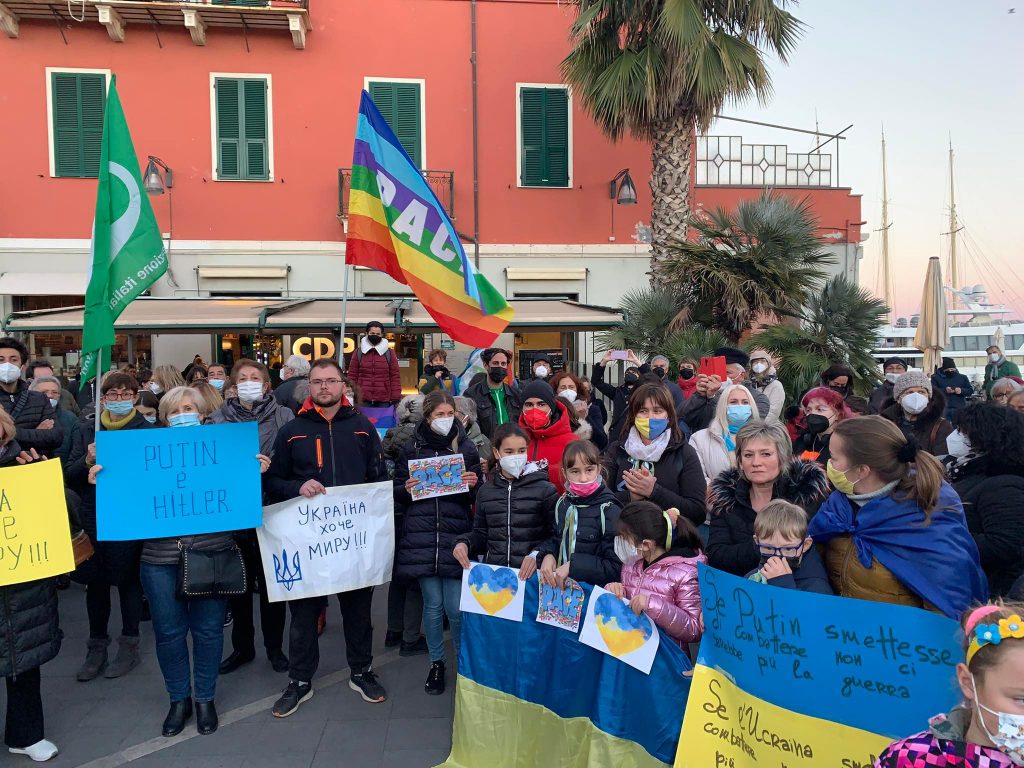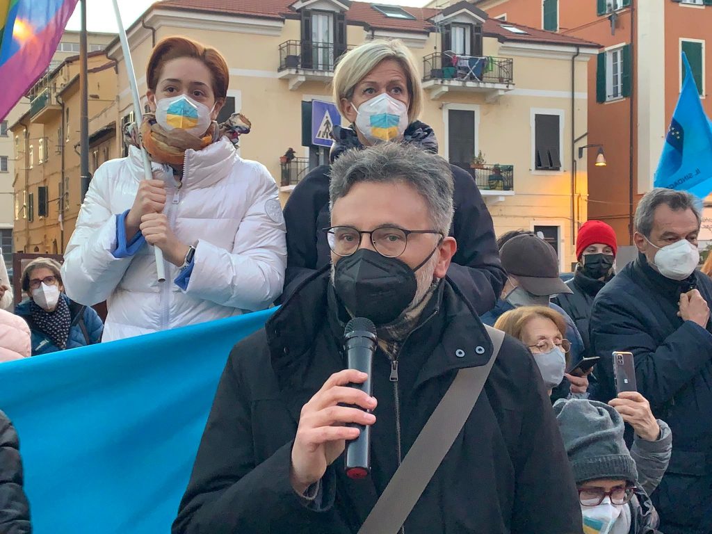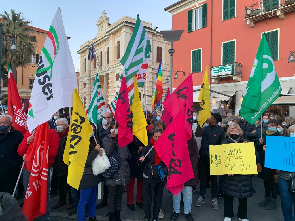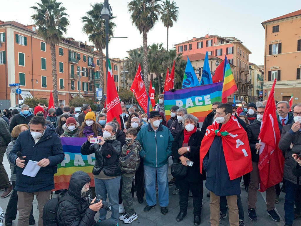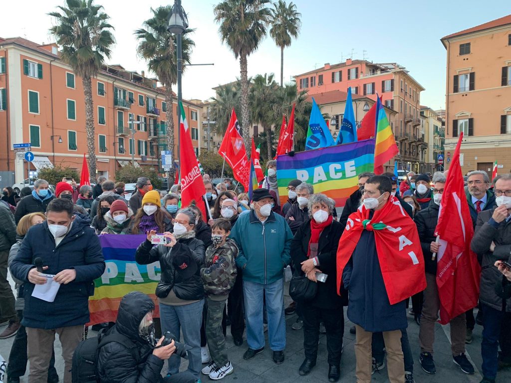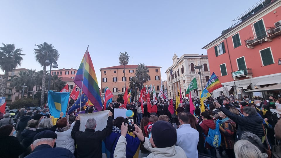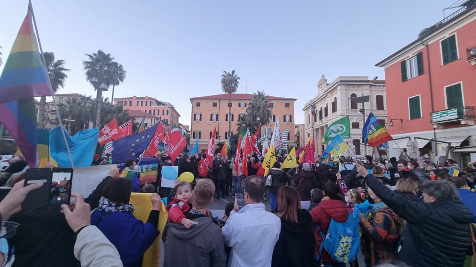 Insieme a tantissime persone comuni di ogni età, c’erano i rappresentanti e le bandiere del Pd, dei Giovani Democratici di Libera, delle 6000 sardine ponentine, dell’Arci , di Sinistra Italiana, dei Socialisti e ancora di Cgil, Cisl, Uil, Cia, Anpi e Auser. Tante le bandiere della pace e i disegni realizzati da bambini, che si sono stretti attorno a una folta rappresentanza della comunità ucraina imperiese.