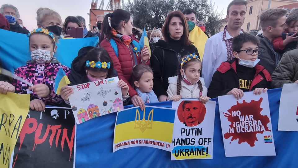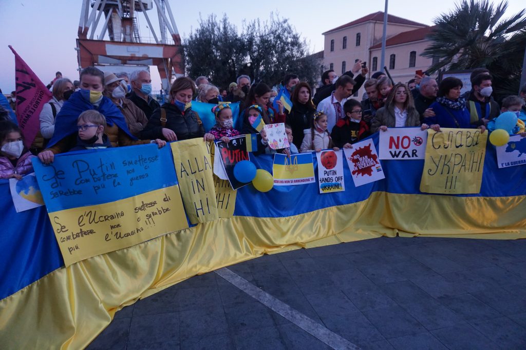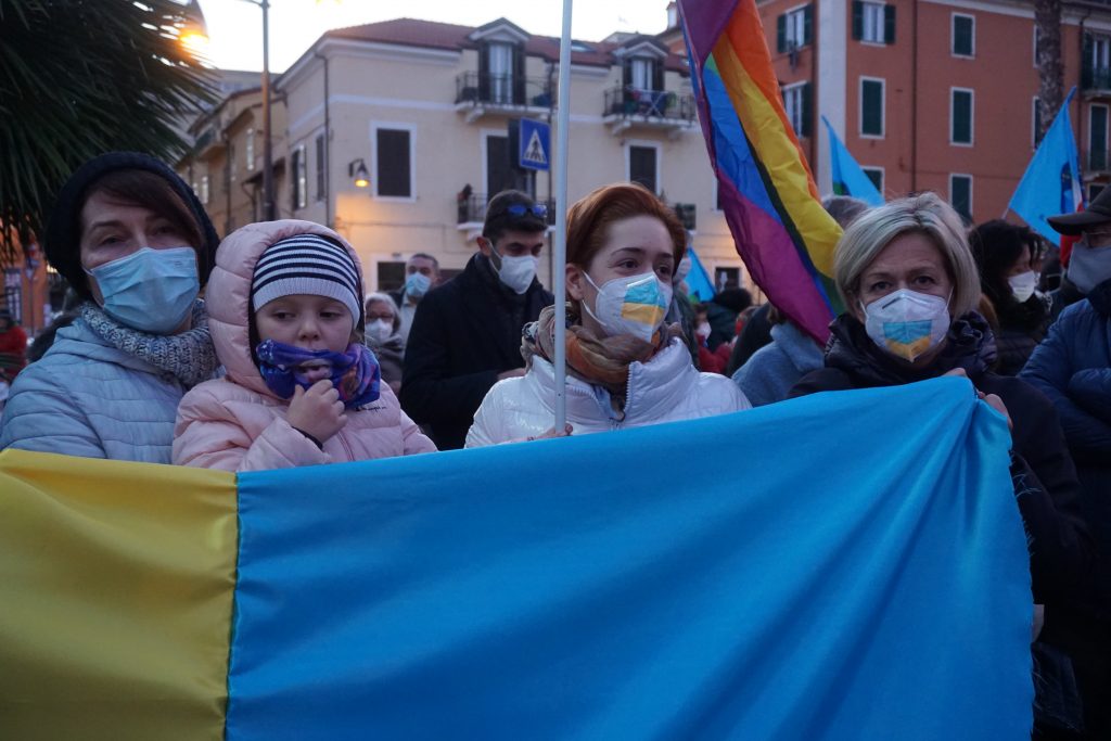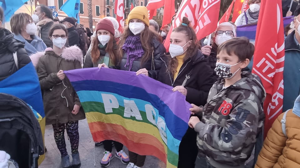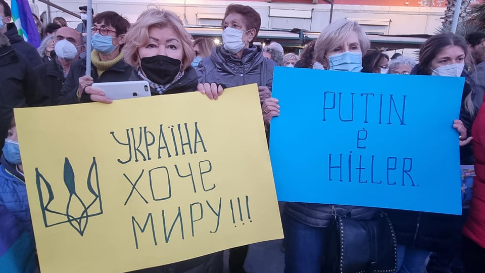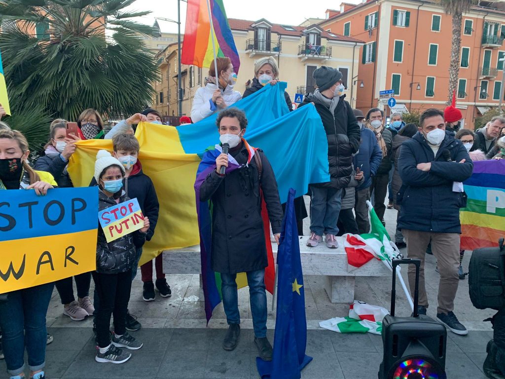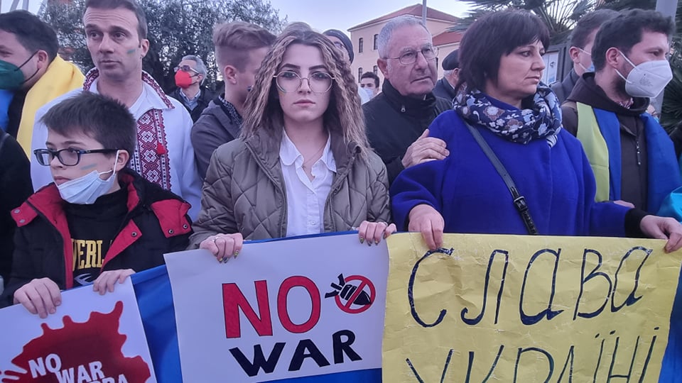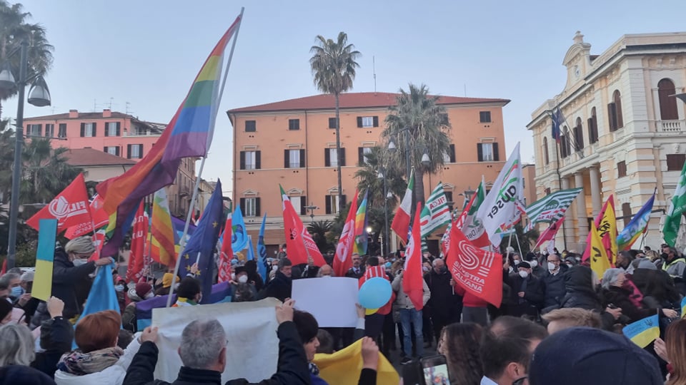 Insieme a tantissime persone comuni di ogni età, c’erano i rappresentanti e le bandiere del Pd, dei Giovani Democratici di Libera, delle 6000 sardine ponentine, dell’Arci , di Sinistra Italiana, dei Socialisti e ancora di Cgil, Cisl, Uil, Cia, Anpi e Auser. Tante le bandiere della pace e i disegni realizzati da bambini, che si sono stretti attorno a una folta rappresentanza della comunità ucraina imperiese.