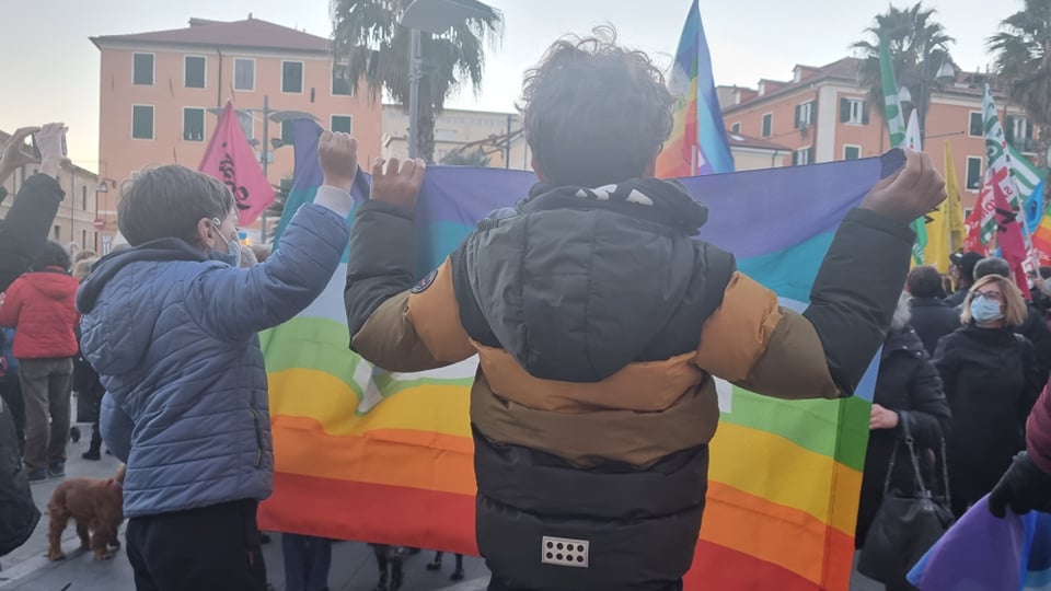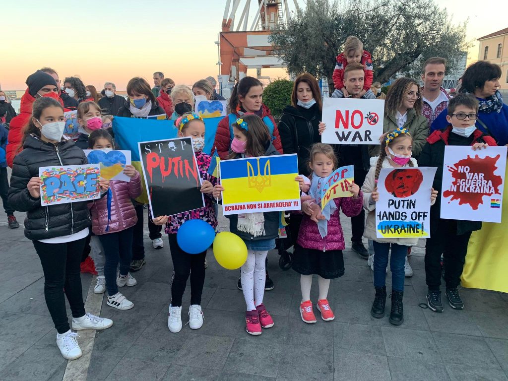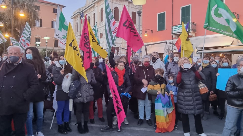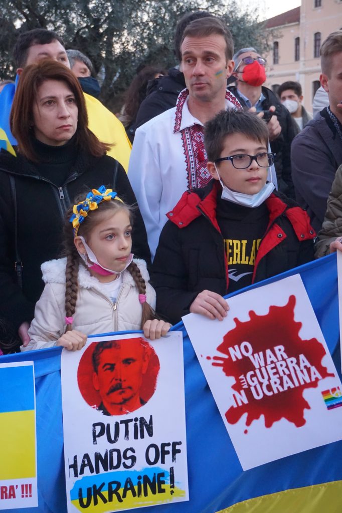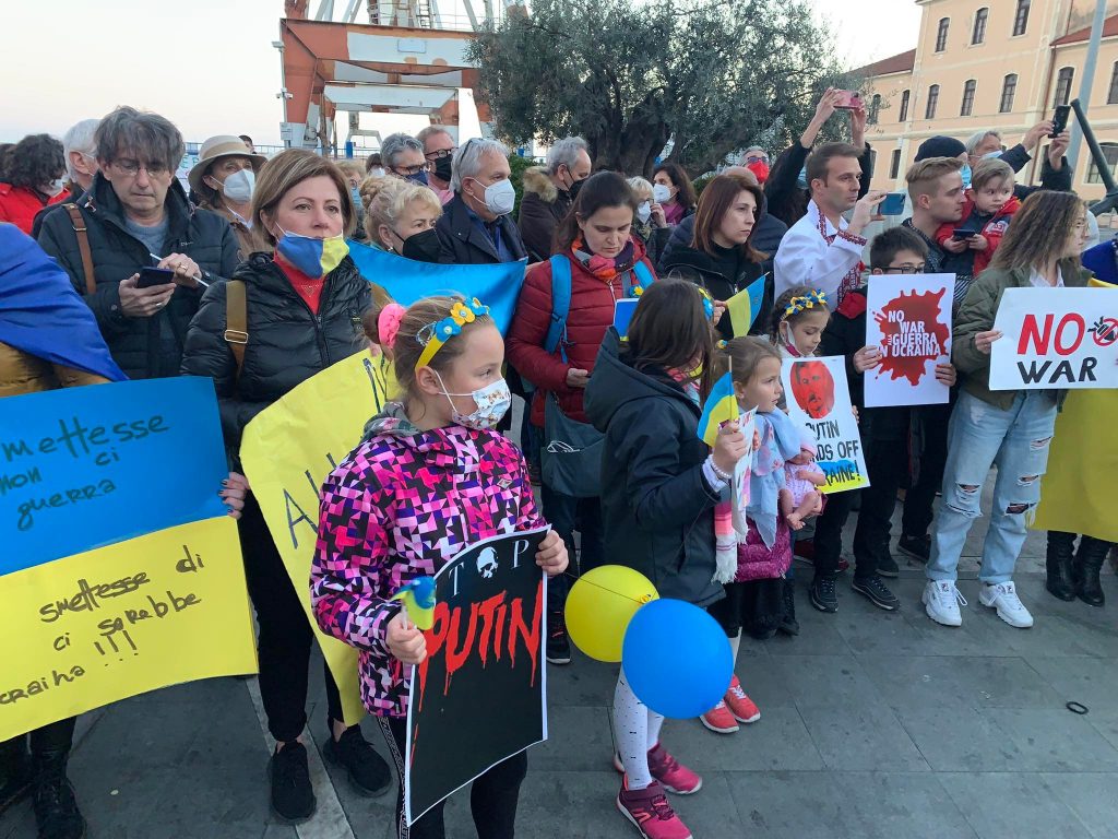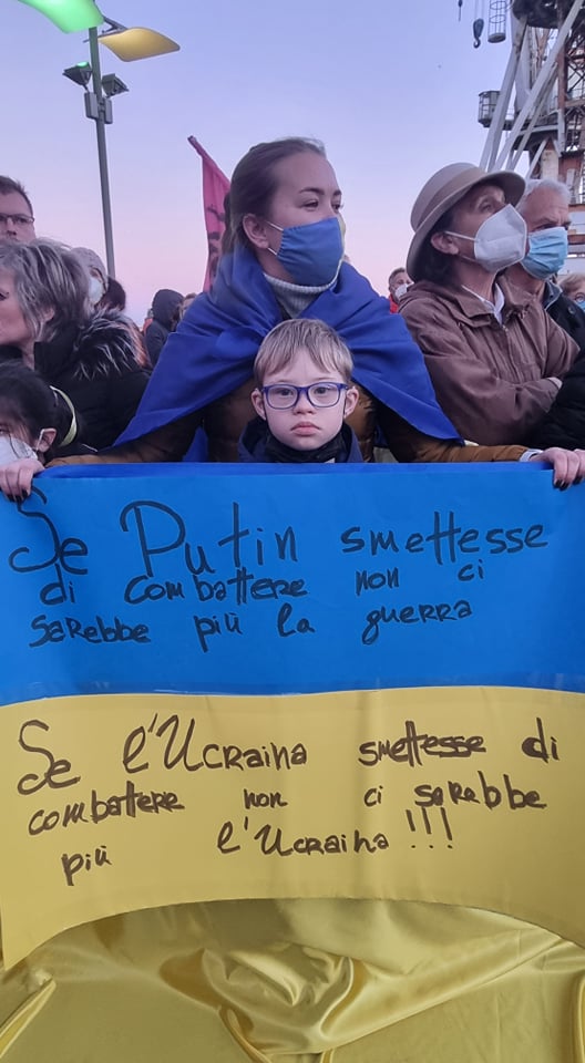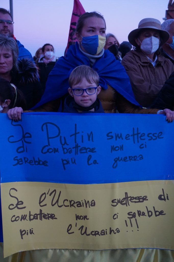 Insieme a tantissime persone comuni di ogni età, c’erano i rappresentanti e le bandiere del Pd, dei Giovani Democratici di Libera, delle 6000 sardine ponentine, dell’Arci , di Sinistra Italiana, dei Socialisti e ancora di Cgil, Cisl, Uil, Cia, Anpi e Auser. Tante le bandiere della pace e i disegni realizzati da bambini, che si sono stretti attorno a una folta rappresentanza della comunità ucraina imperiese.