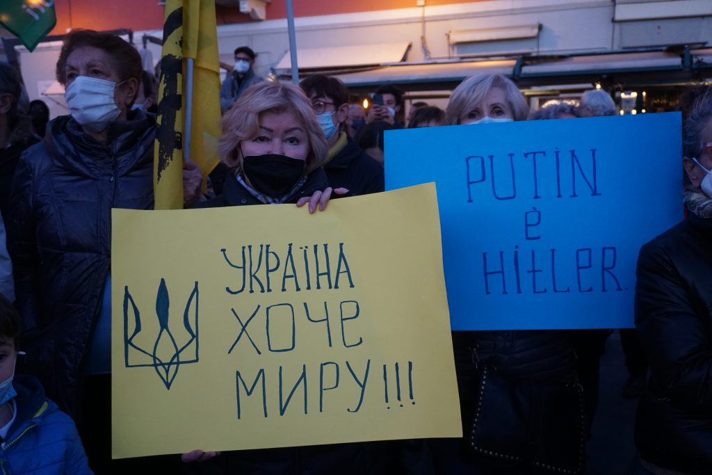 Oltre un centinaio di persone hanno preso parte nella serata di oggi alla manifestazione per la pace in Ucraina, promossa dal Partito Democratico di Imperia in piazza De Amicis.