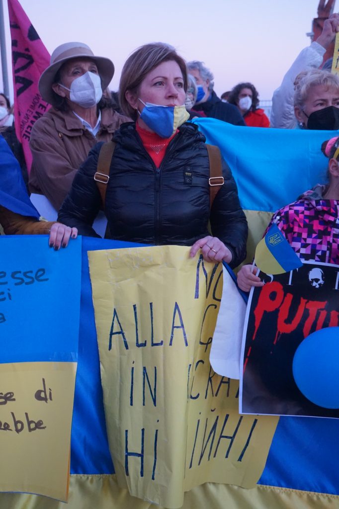 Anna, giovane ragazza ucraina che ora vive in Italia con la sua famiglia dice: “Ho sentito mia nonna in lacrime e io da qua non posso fare molto. Ringrazio Imperia e quelli che sono venuti qui perché anche così possiamo fare qualcosa. Bombardano e non smettono. I civili fermano i carri armati disarmati e a volte ci riescono pure. Oggi mi hanno detto che è morta una bambina. E’ una cosa orribile“.