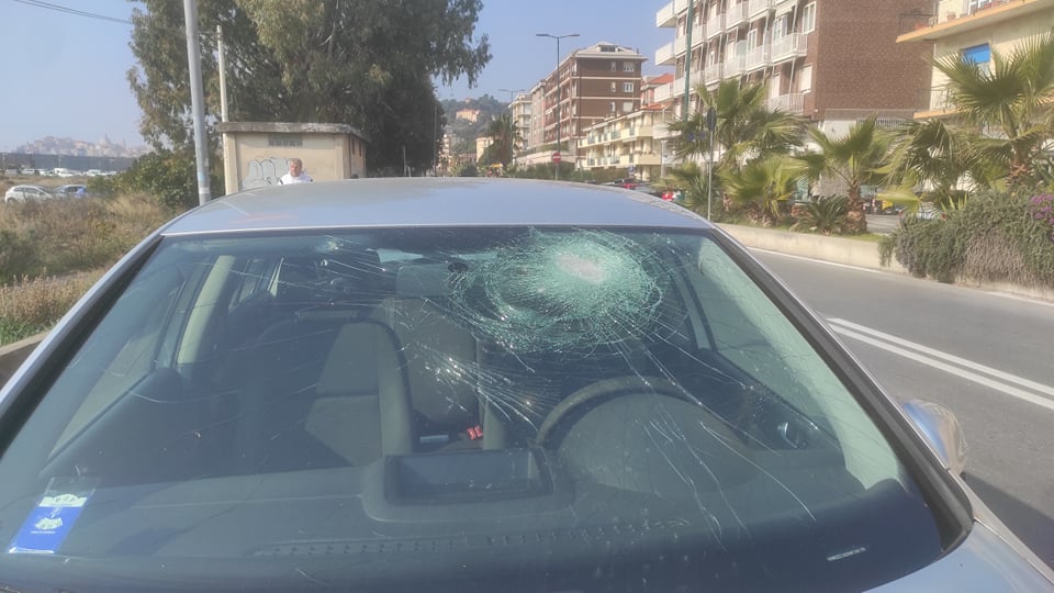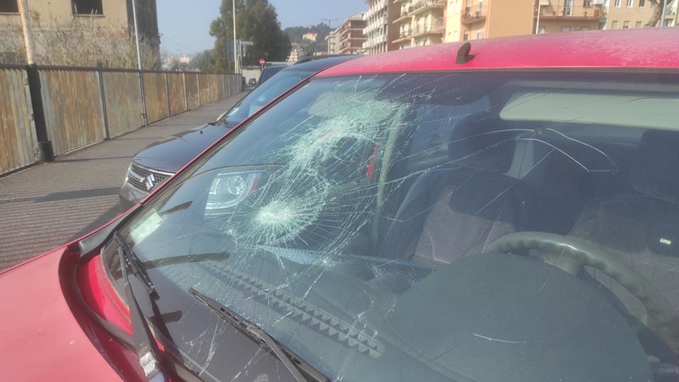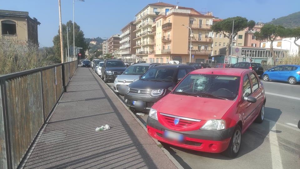 Vandali in azione sul lungomare Amerigo Vespucci, a Imperia. Diverse auto sono state danneggiate, probabilmente, dal lancio di pietre.