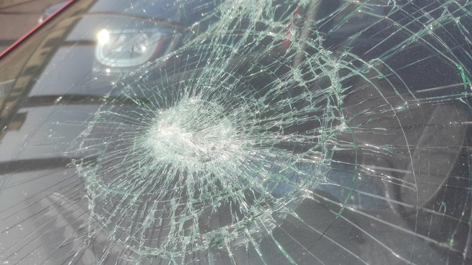 Le auto presentano vetri rotti e specchietti retrovisori divelti.