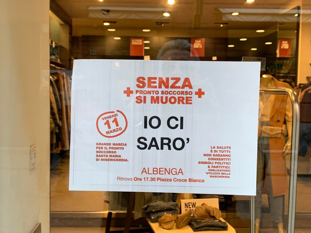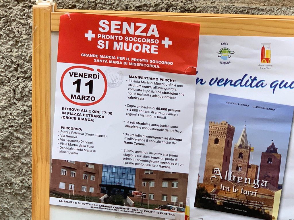 Spiegano gli organizzatori: “Il Santa Maria di Misericordia è una struttura nuova, all’avanguardia, collocata in posizione strategica, che non è mai stata valorizzata adeguatamente. Copre un bacino di 60 mila persone oltre a altri 4 mila abitanti di altre province o regioni e turisti. Le reti stradali sono obsolete e congestionate dal traffico e un presidio di emergenza ad Albenga migliorerebbe anche il servizio dell’ospedale Santa Corona di Pietra Ligure. Stiamo andando incontro alla prima stagione turistica, senza un punto di Pronto Soccorso e con il primo punto nascite a Savona“.
