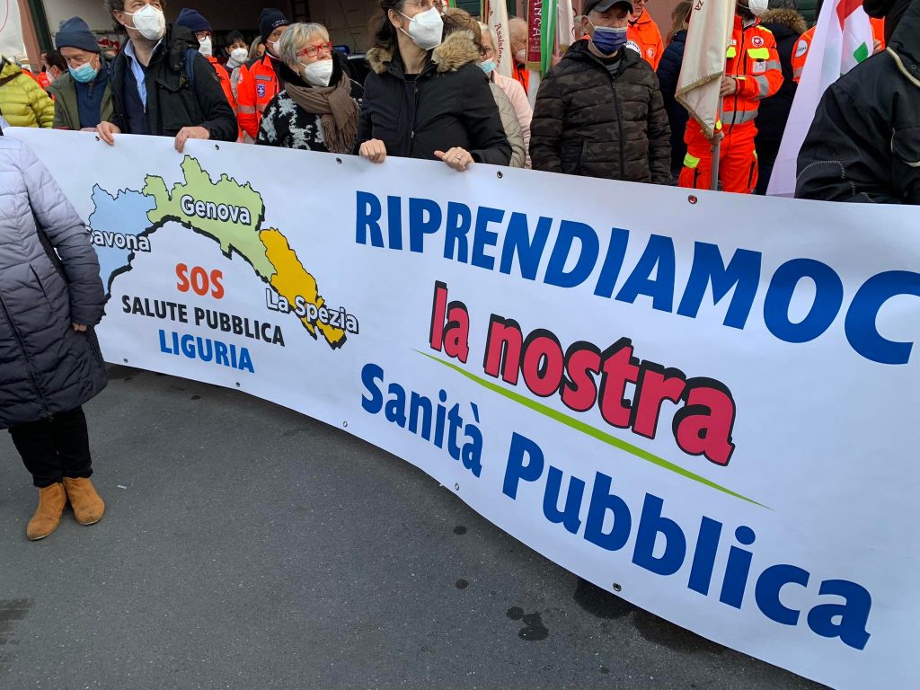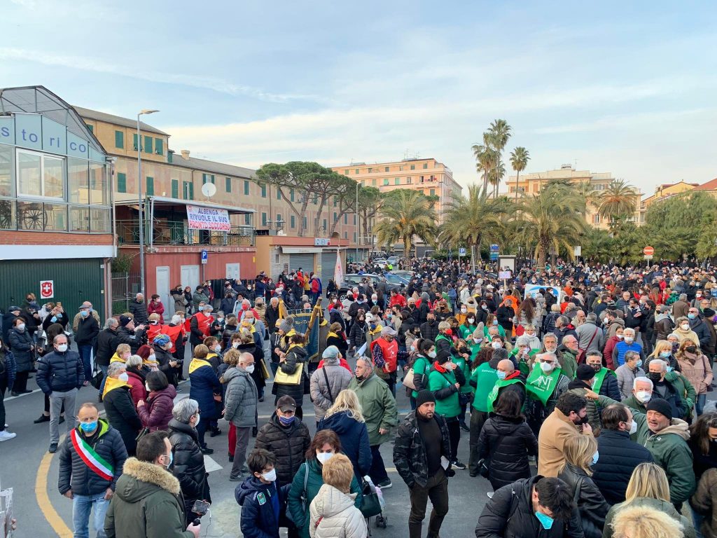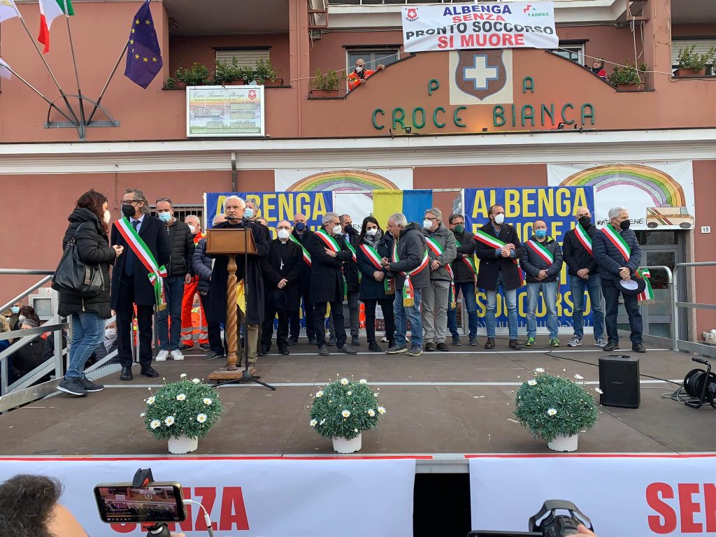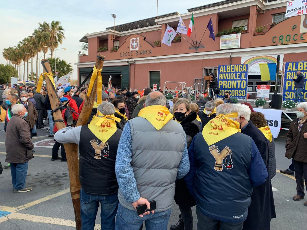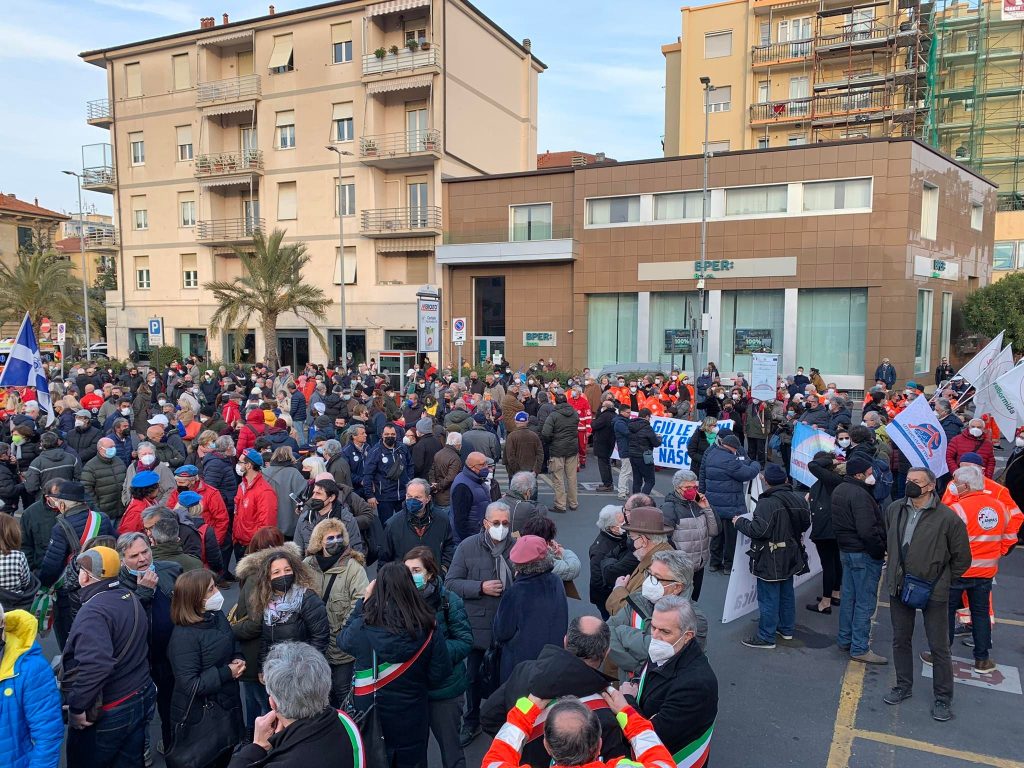 Dopo il ritrovo in piazza Petrarca, il corteo, formato da migliaia di persone, si è mosso lungo via Genova, via Da Vinci, viale Martiri della Foce, fino a raggiungere l’ospedale di Albenga.