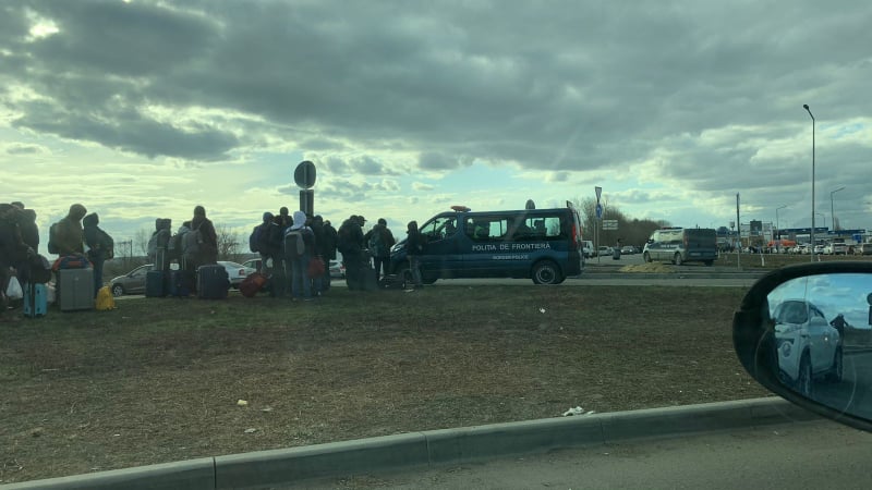 Di notte, mentre aspettavamo di attraversare il confine, abbiamo visto dei missili e sentito delle esplosioni. Abbiamo visto dei carri armati venirci incontro. C’erano moltissimi posti di blocco, con delle basi militari in difesa della città.