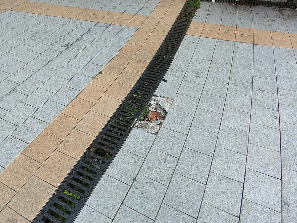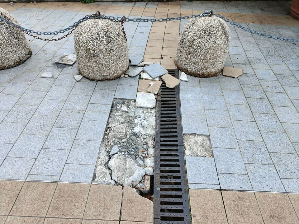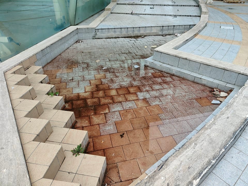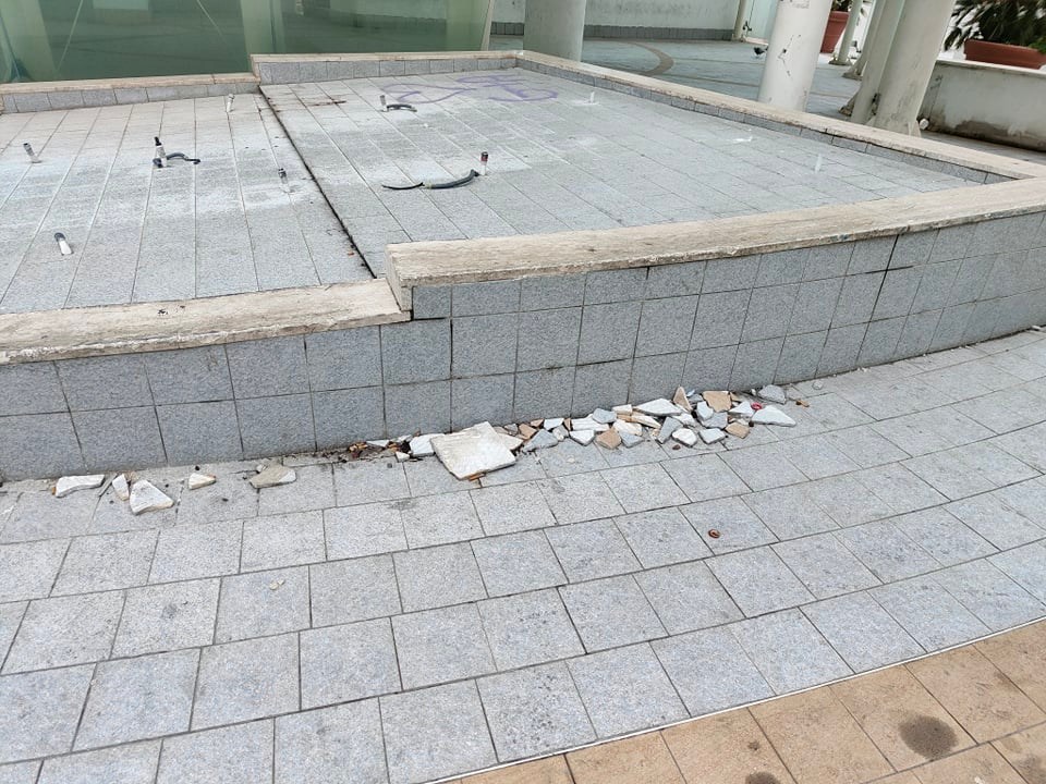 La pavimentazione, per via dell’ingresso delle auto, risulta danneggiata in più punti, le aiuole stracolme di rifiuti e incolte. Insegne e cartelli sono in alcuni casi sradicati, in altri sbiaditi. Le vetrate delle attività chiuse, i cui locali sono utilizzati come magazzini, sono sporche, quelle del negozio cinese One Fashion danneggiate in più punti.