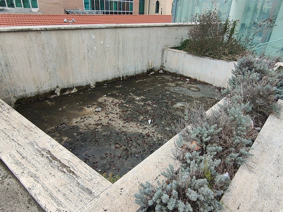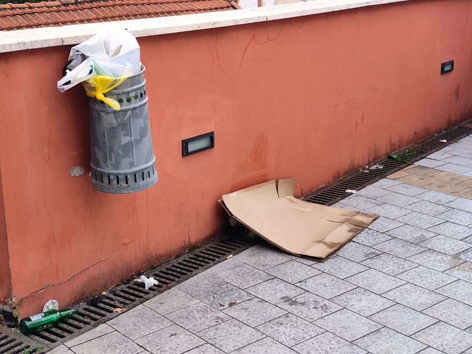 A terra, nelle aiuole, bottiglie di birra, resti di cibo, sigarette. I cestini dei rifiuti sono stracolmi. Graffiti ovunque. Un’area in totale stato di abbandono che la cittadinanza chiede a gran voce venga riqualificata al più presto, anche perché da anni ormai casa di sbandati, senzatetto, vandali.