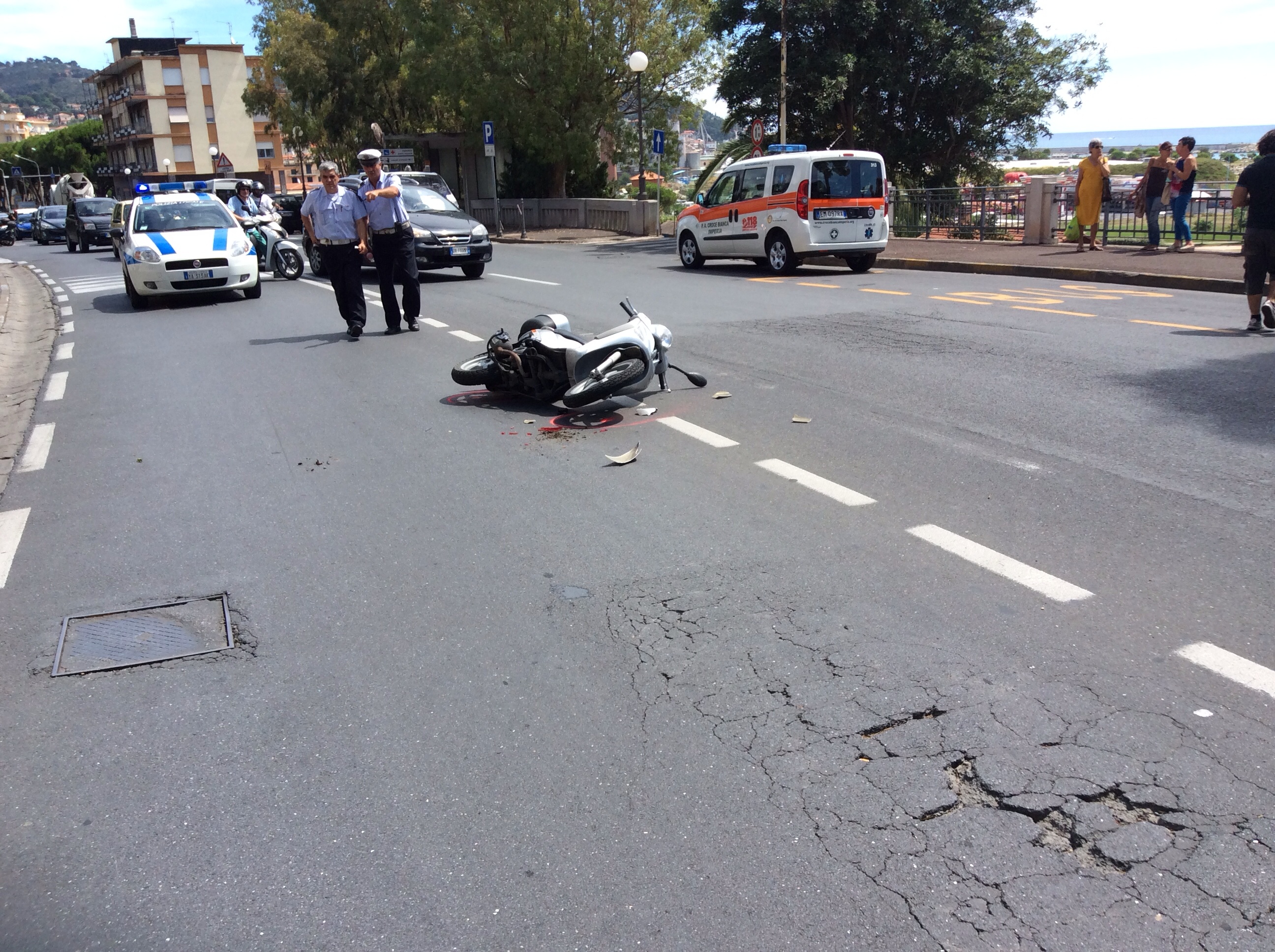 Incidente questa mattina a Imperia, in via Matteotti, proprio di fronte al Comune di Imperia. Una ragazza di 23 anni, T.G., a bordo di un motorino, dopo lo scontro con un’auto, guidata da un cittadino di origine belga D.A., è rovinata a terra battendo il capo. Sul posto sono accorsi immediatamente i Vigili Urbani e successivamente un’ambulanza della Croce Oro di Cervo che, dopo aver stabilizzato la giovane, l’ha trasportata al Pronto Soccorso dell’Ospedale di Imperia in codice giallo. Le sue condizioni non sono gravi.