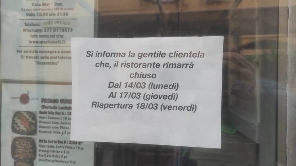 Nel dettaglio, la chiusura prevista per “Spazio Sushi” è di quattro giorni, da lunedì 14 marzo a giovedì 17.