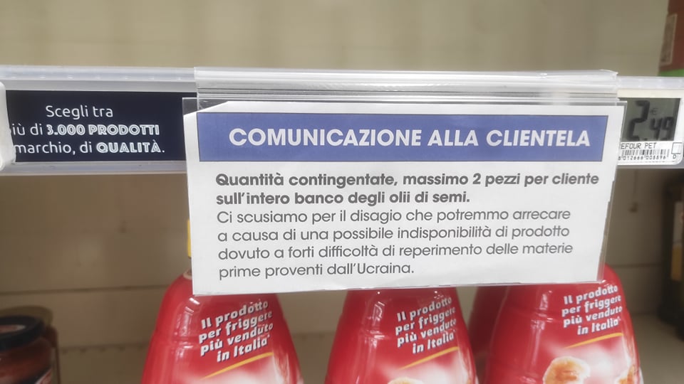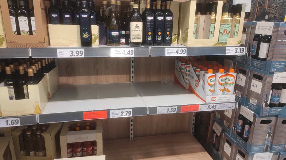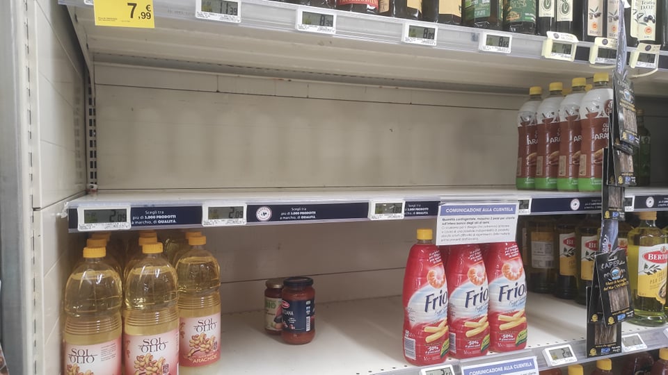Ciò che manca ormai da giorni, invece, è l‘olio di semi, esaurito in molti punti vendita.
