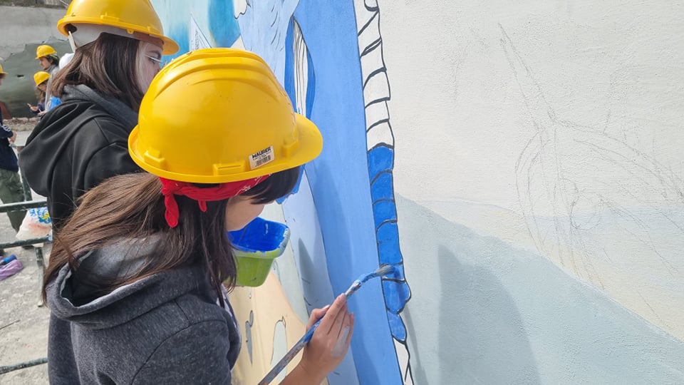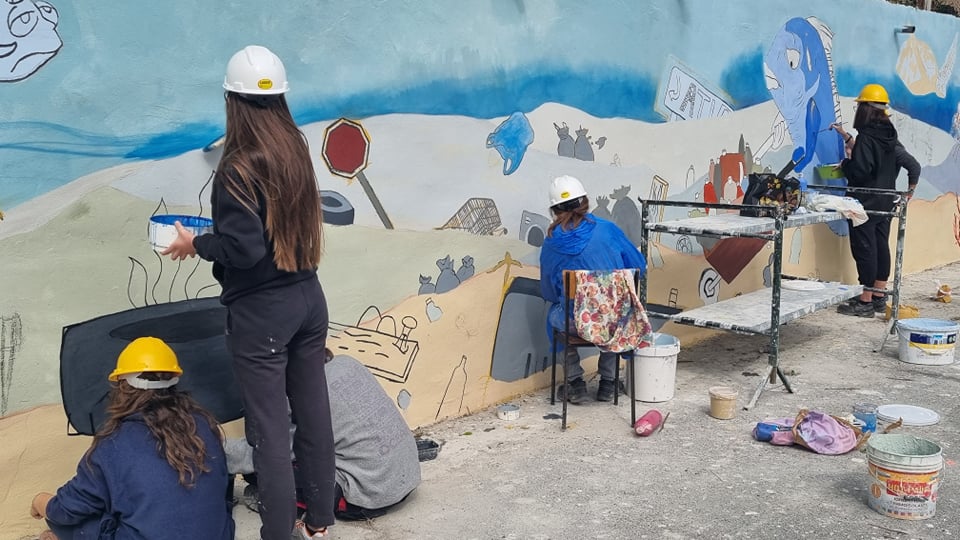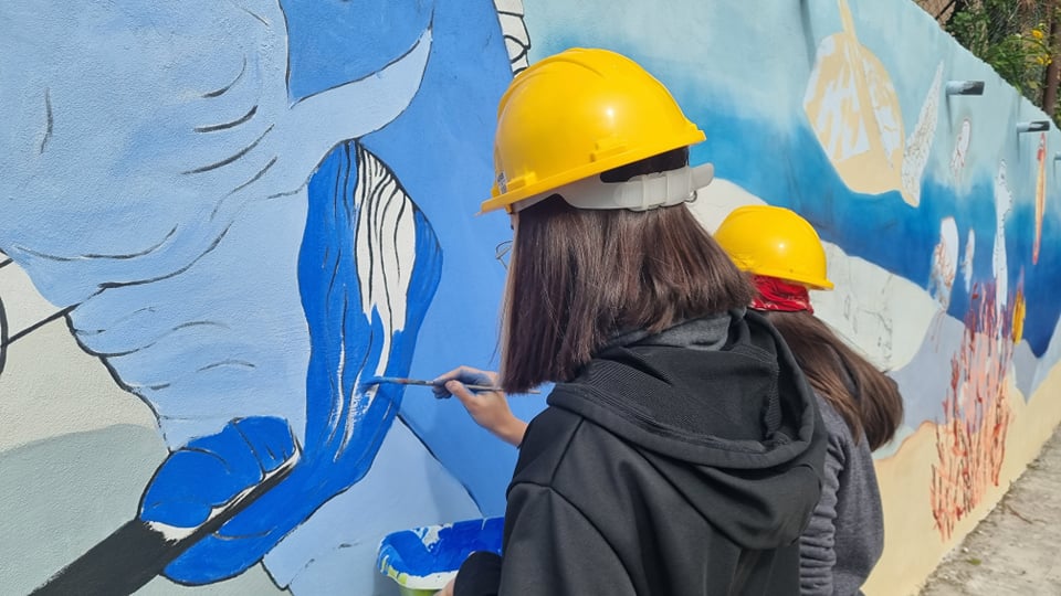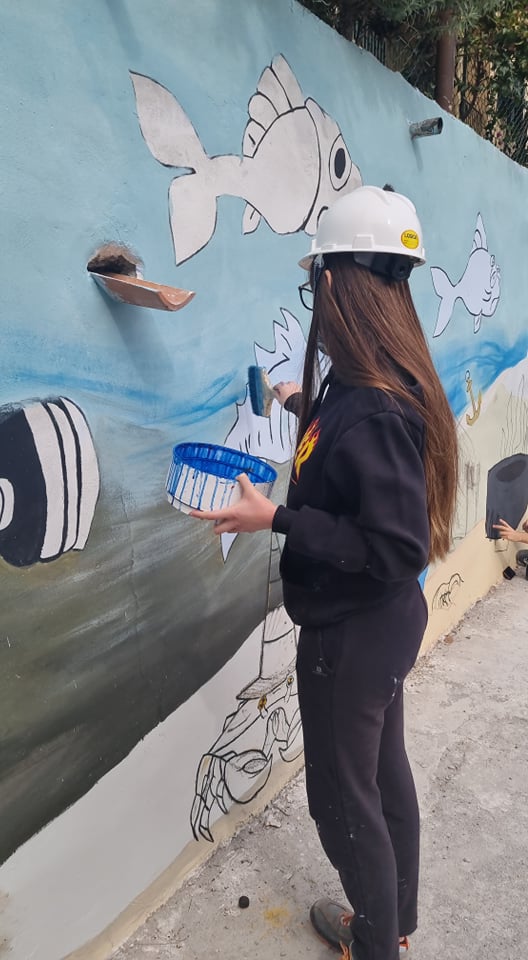 Il tema del murales è la cura dell’ambiente, in particolare del mare, argomento di grande attualità e a cui i giovani sono particolarmente attenti.