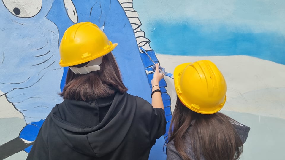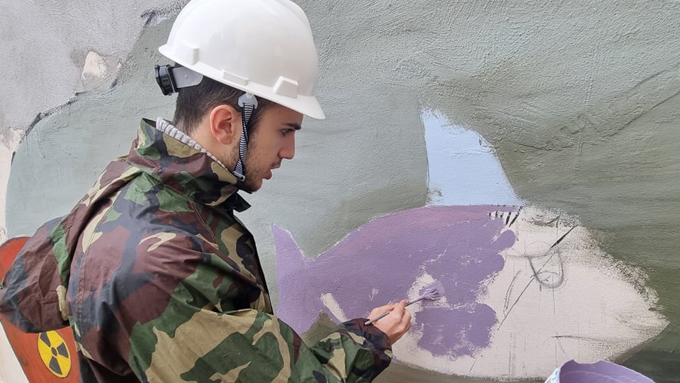 “Il progetto è utilizzato come PCTO, sostituto della scuola lavoro – spiega Donia – Dobbiamo realizzare un murales di circa 25×3 metri in questo campetto. Per il tema abbiamo scelto tra le tematiche ambientali, per sensibilizzare i giovani delle elementari e dell’Edile che frequentano questo posto. Abbiamo scelto l’ambiente marittimo, inquinato dalla plastica e dai rifiuti, ricordando di fare la differenziata e di non inquinare. Ci sono pesci e animali per rendere il tutto più simpatico, dato che è rivolto a bambini e ragazzi. Anche se la tematica è difficile e pensate deve essere preso con tranquillità.