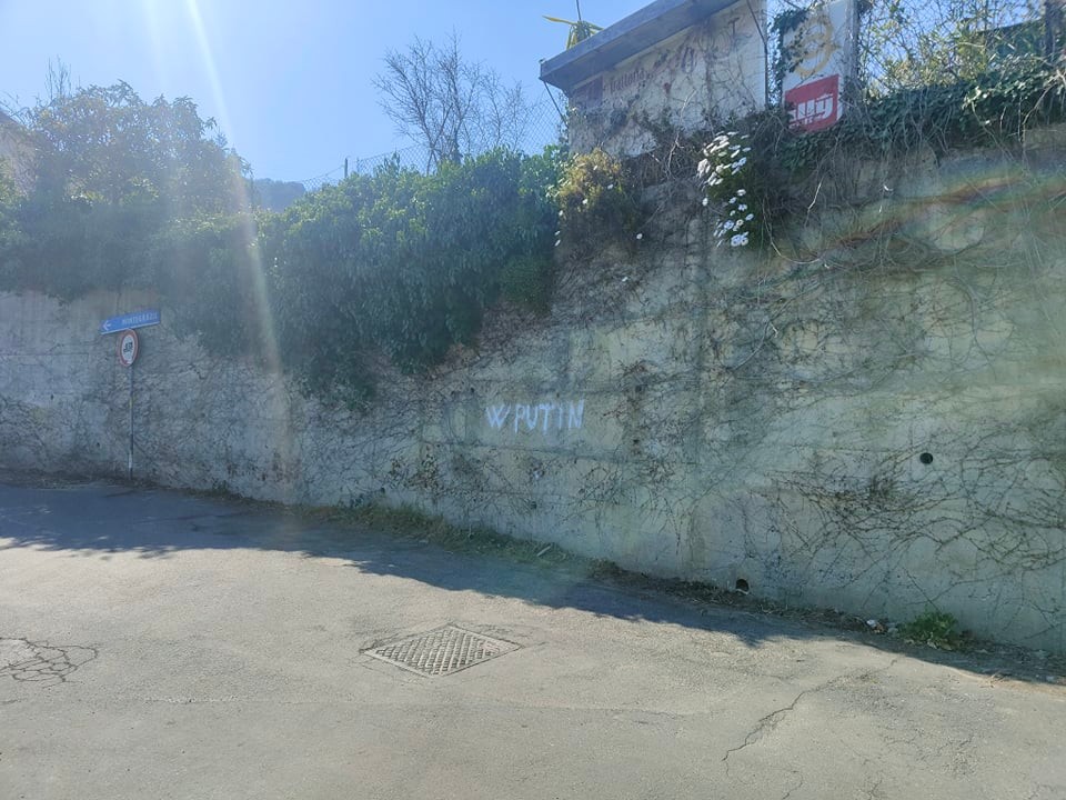 Una scritta, “W Putin”, è comparsa nella giornata odierna, 24 marzo, in via Sant’Agata. Ad accorgersi della scritta che inneggia al presidente russo Vladimir Putin alcuni residenti che hanno contattato la nostra redazione per esprimere la loro contrarierà e chiedere alle istituzioni l’immediata cancellazione visto il momento storico in atto, con la guerra in corso in Ucraina, occupata dall’esercito russo.
