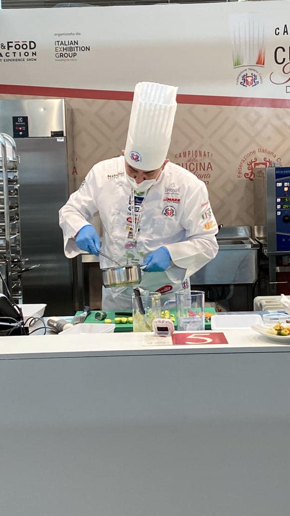 “Avevamo 45 minuti per consegnare il piatto. Io ero inserito nella categoria K1, quella degli antipasti. La giuria applicava tutta una serie di valutazioni. Per un 50% il gusto e l’estetica del piatto. Per il restante 50% la tecnica, la sostenibilità, la tipologia di cottura. E’ stata una gioia estrema conquistare la medaglia di bronzo alla mia prima partecipazione”.