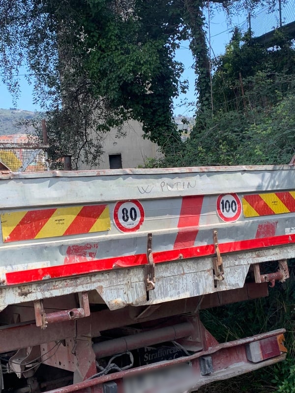 Il camion, in particolare, è stato anche “marchiato” con la “Z”, il simbolo che contraddistingue i carri armati russi in azione nella guerra in Ucraina. Gli autori di queste scritte potrebbero essere gli stessi di quelle realizzate nelle altre zone della città.