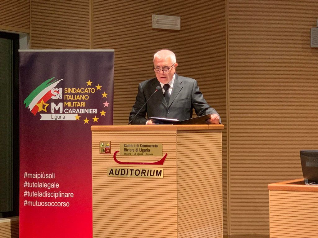 Sono intervenuti il presidente nazionale del Sim Carabinieri Giuseppe Bonadonna, il segretario generale regionale della Liguria Luciano Zarbano, il segretario generale provinciale Rosario Mauriello e quale relatore il professor Francesco Vallacqua dell’Università Bocconi.