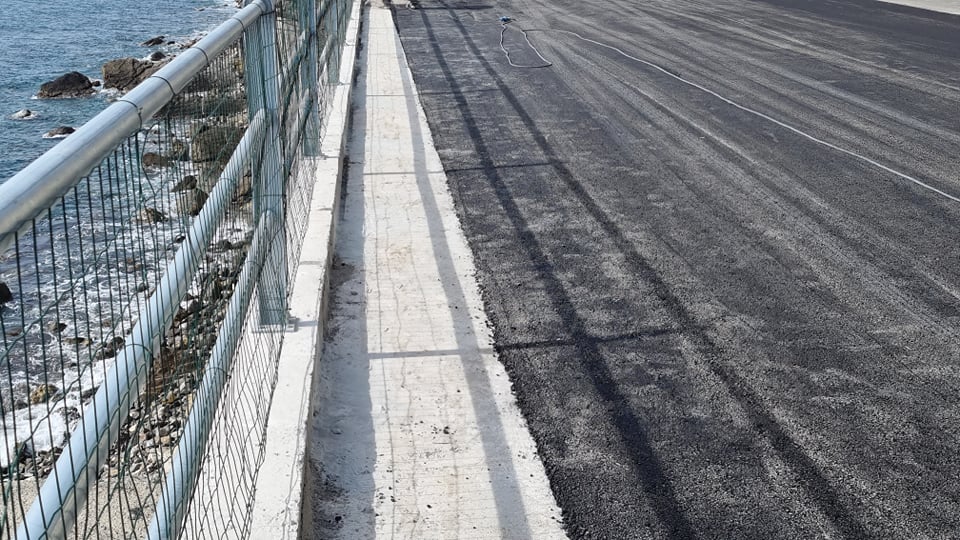 Oggi siamo qui finalmente a chiudere questi lavori e, a breve, a dare la riapertura speriamo quasi definitiva. Dico quasi perchè qui passano tutti i sottoservizi, acquedotti, fognature, infrastrutture importanti per il nostro territorio e, al di là di questo, ci sono in corso i progetti per il passaggio della ciclovia tirrenica. Insieme a questi anche il consolidamento della zona a valle del muraglione e anche a monte, quindi tutto il consolidamento idrogeologico del versante di Capo Berta.