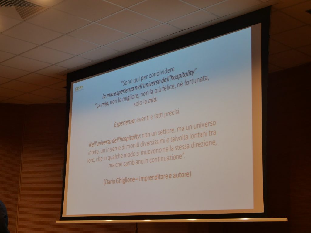 Dario è arrivato ad essere nostro cliente, nel nostro gruppo di formazione e subito si è distinto per la sua imprenditorialità e per la sua visione evoluta del settore turistico. Con Dario è nata da subito questa idea di raccontare il turismo in maniera più ampia. Gespy diventa per noi una nuova figura alberghiera, che oltre al responsabile commerciale, al responsabile marketing, al responsabile revenyou, aiuta l’albergatore a mettersi in reale connessione con l’ospite e tradurlo in strategia. Così è nato il rapporto con Dario e ‘Gespy, la geometria dell’hospitality'”.