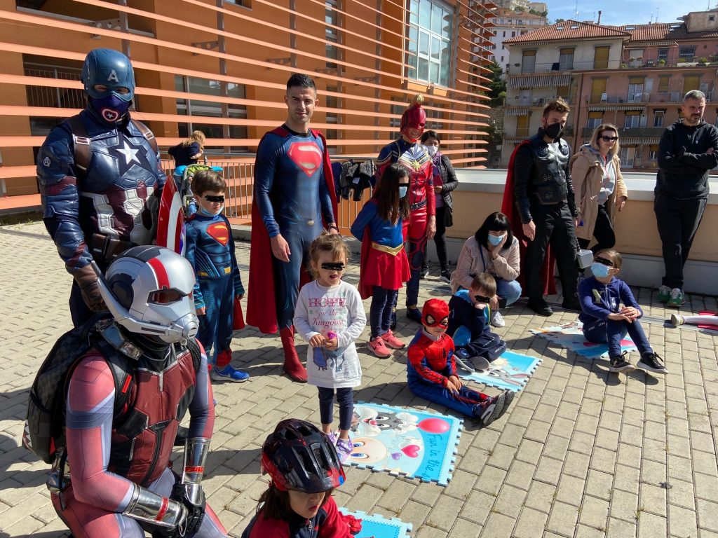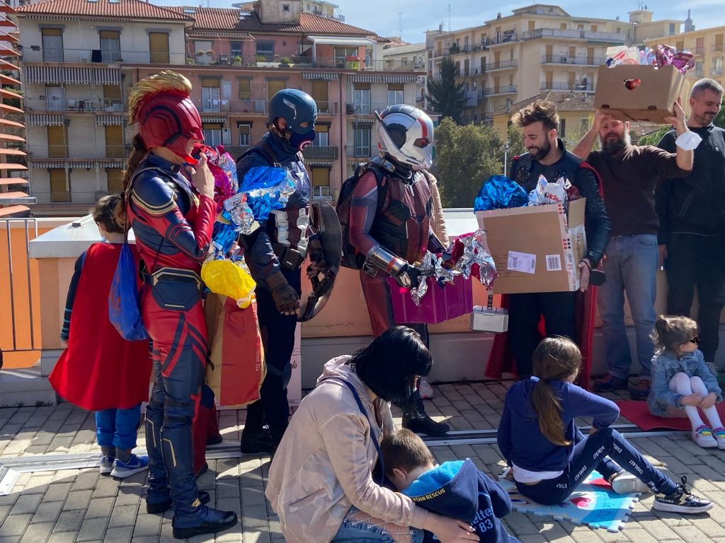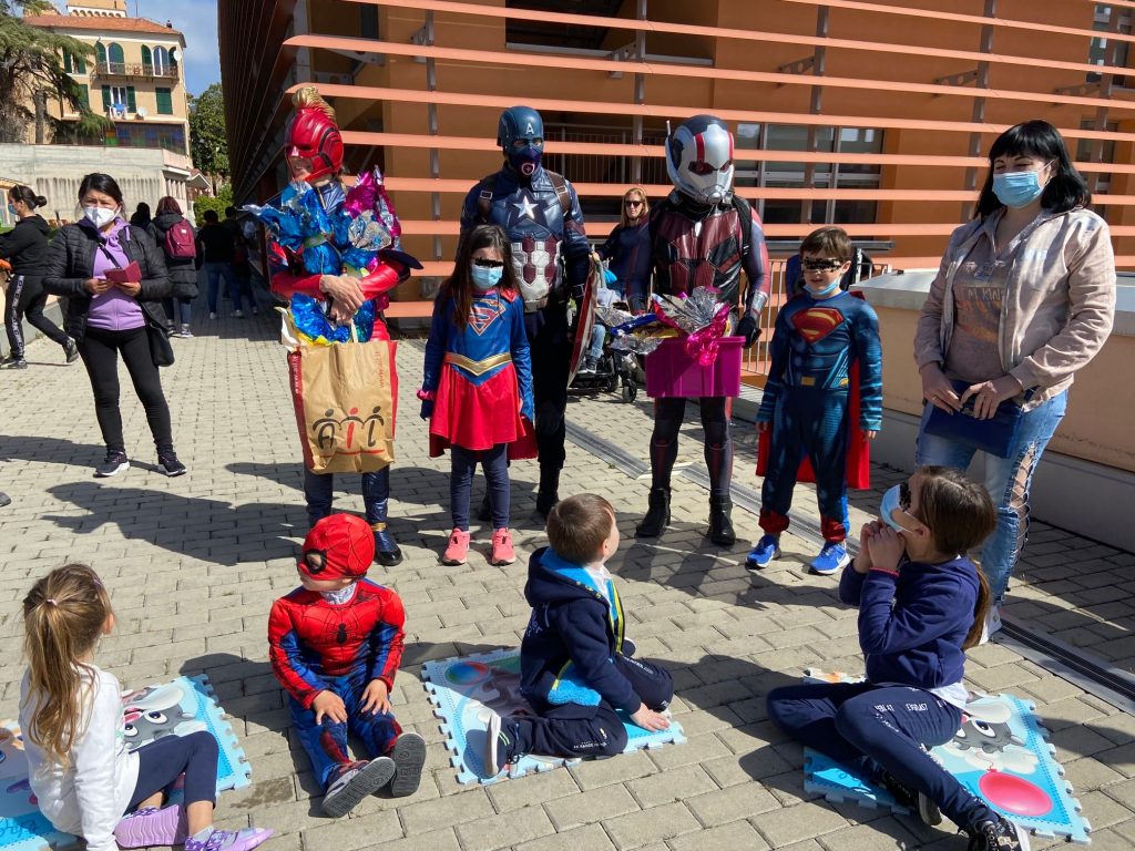 Il tour dei “Supereroi per Voi”, il cui progetto ha lo scopo di regalare per qualche attimo, che siano bambini o adulti, un po’ di serenità e di portare sui loro visi un bel sorriso di felicità. Così Superman, Thor e gli altri personaggi frutto della fantasia della Marvel, si sono recati al reparto di Pediatria dell’ospedale di Imperia e in seguito al Centro Pediatrico di Riabilitazione Motoria al Palasalute del capoluogo, dove hanno distribuito uova di Pasqua e dispensato tanti sorrisi ai bambini e alle bambine presenti.