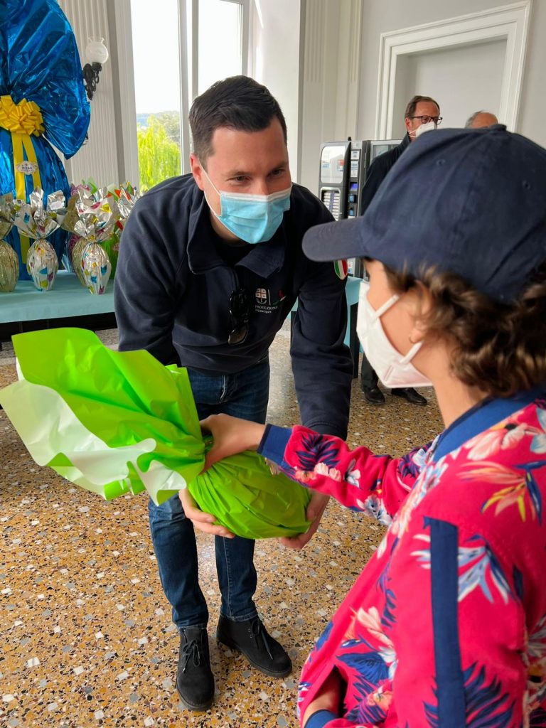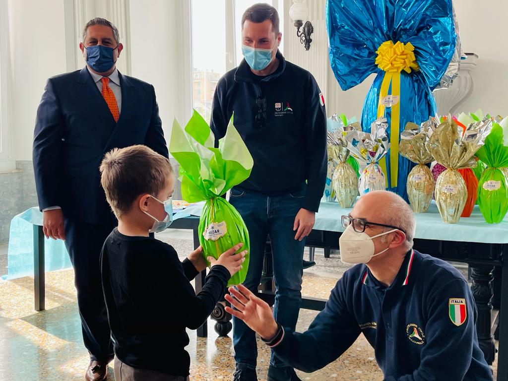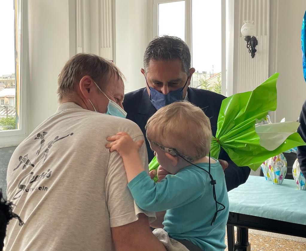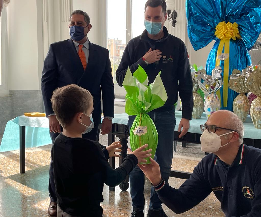 Visita questo pomeriggio del capo del Dipartimento nazionale di Protezione civile Fabrizio Curcio in Regione Liguria. Prima tappa la residenza Santa Dorotea in via Liri dove sono ospitati attualmente 75 profughi, di cui 30 bambini e di questi 16 con patologie oncologiche, seguiti, per le terapie, dall’Istituto Gaslini. Un’occasione per consegnare ai bambini le uova pasquali.