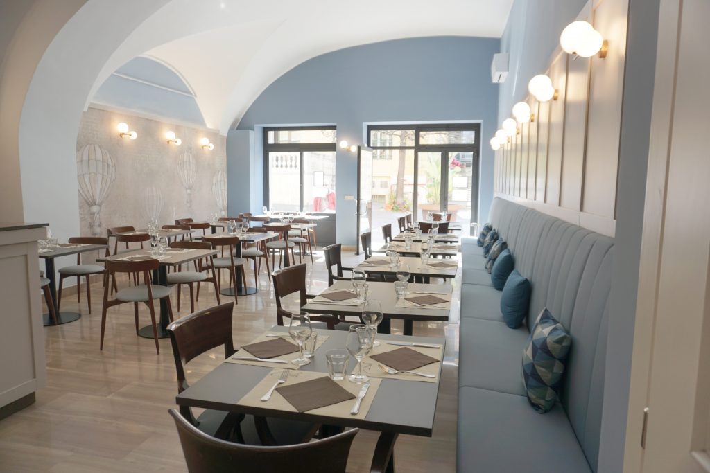 Abbiamo scelto via Cascione perchè è una bellissima via che ha grandi potenzialità specialmente grazie alla pedonalizzazione che ha rilanciato la zona. Siamo proprio di fronte allo storico Teatro Cavour che speriamo riapra presto. Proprio questi locali, che abbiamo completamente ristrutturato grazie al sapiente lavoro degli artigiani della ditta “Il Bosforo” e degli architetti, hanno ospitato per anni della rinomata Pasticceria “Del teatro” di Claudio Mareri.