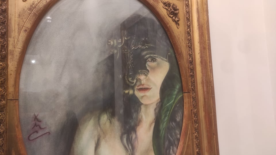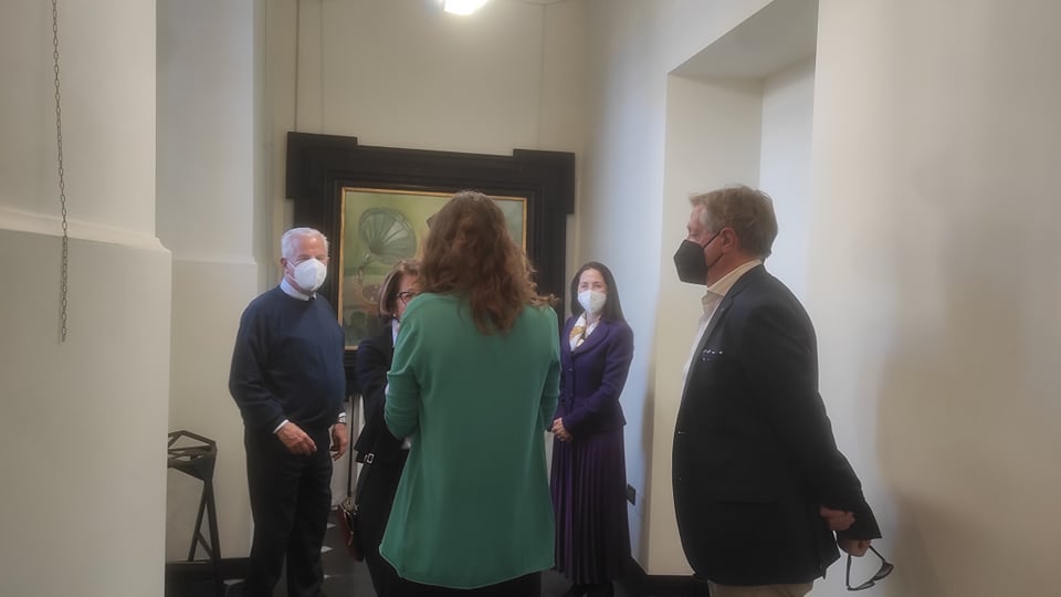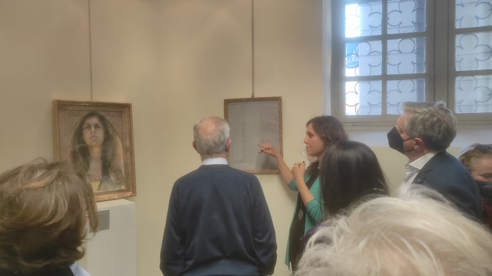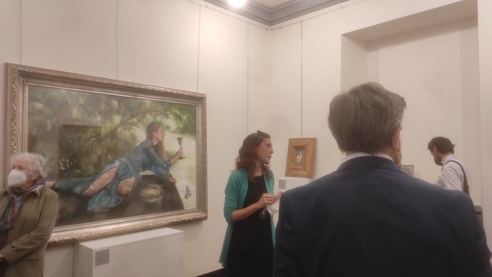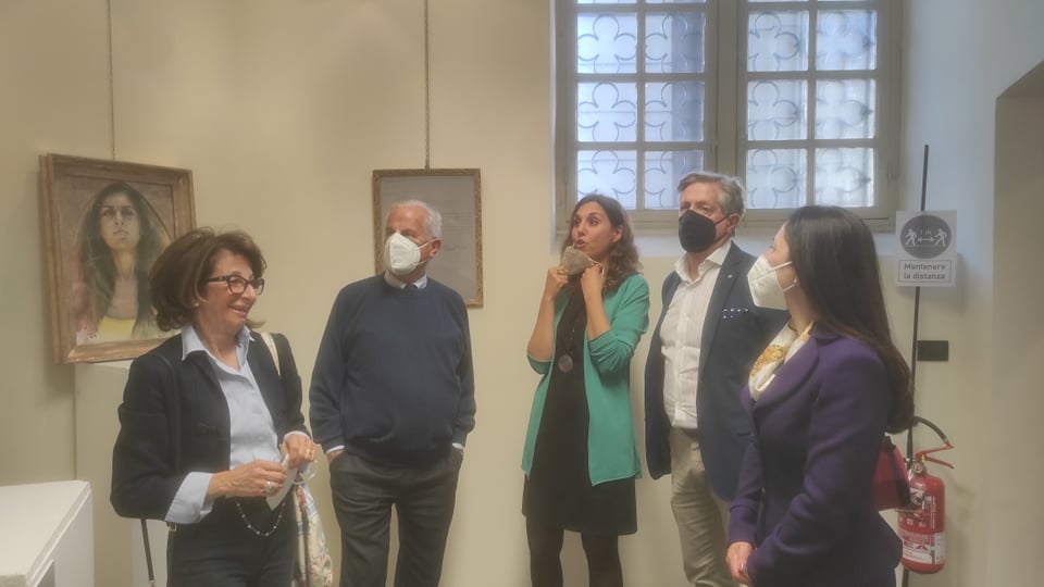 Presene oltre al sindaco di Imperia, Claudio Scajola e al consigliere comunale Vincenzo Garibbo, anche una modella raffigurata nei dipinti dell’artista.