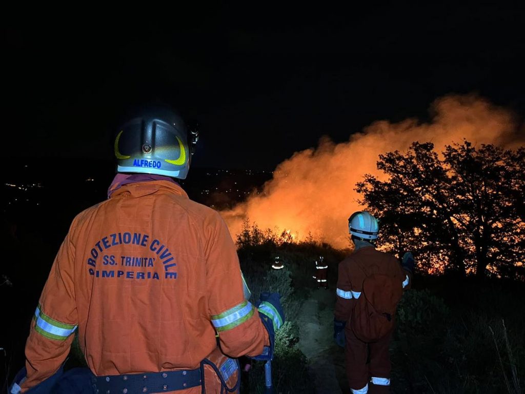 Notte di paura per l’incendio divampato verso le 22.30 di ieri sera tra Poggi di Imperia e Dolcedo, Santa Brigida, Cinque Burche.