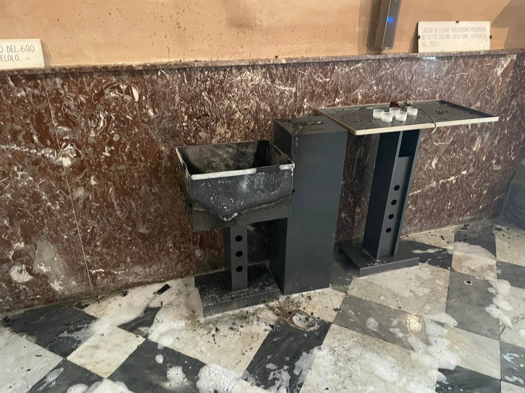 Grande paura la domenica di Pasqua nella Chiesa di Sant’Ambrogio di Alassio. Secondo quanto ricostruito, in due avrebbero appiccato il fuoco alla cassetta dei lumini votivi generando un incendio che ha causato diversi danni agli arredi della Chiesa. Fortunatamente non ci sono stati feriti.