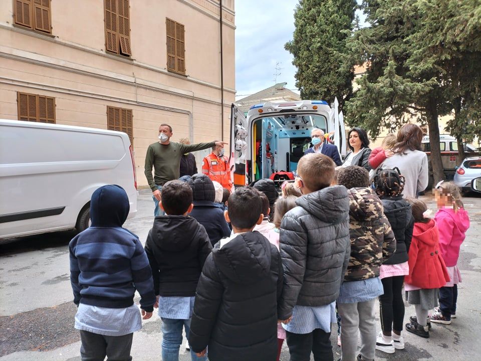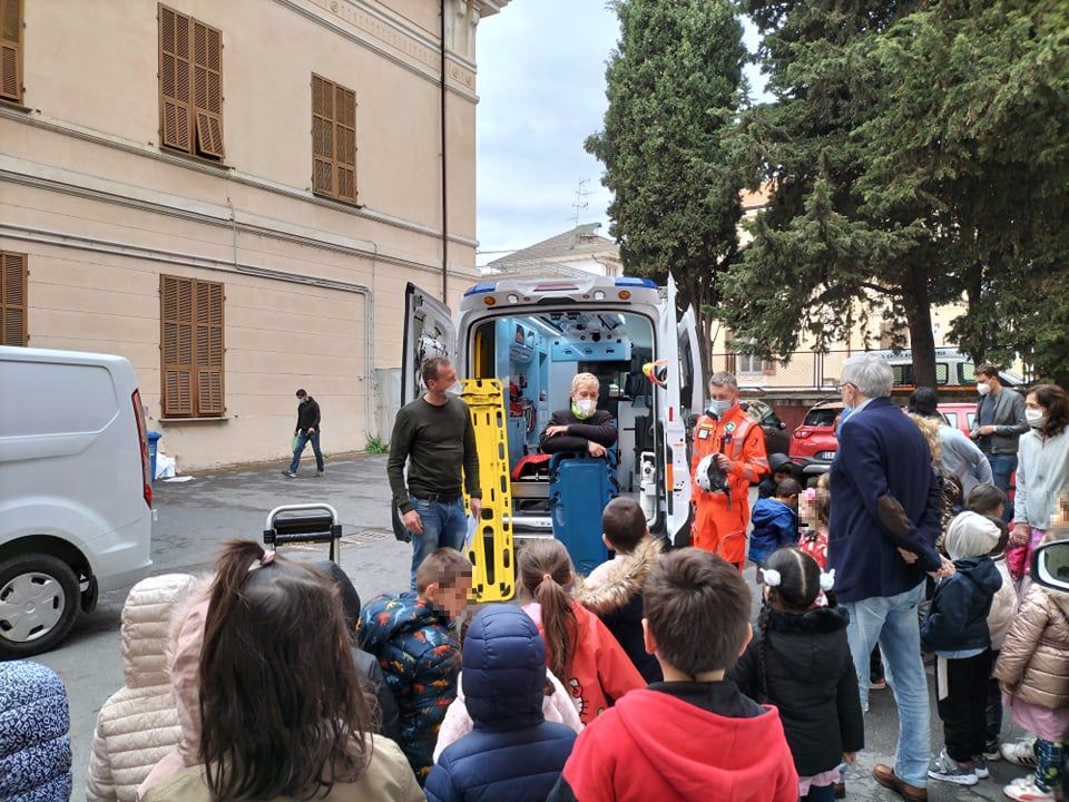 Presente anche il cardiologo Antonello Ranise, che ha tenuto ai più piccoli una lezione sul primo soccorso. Insieme al presidente Roberto Trincheri, è stata mostrata loro tutta la strumentazione presente al interno dell’ambulanza