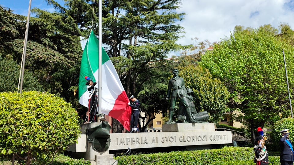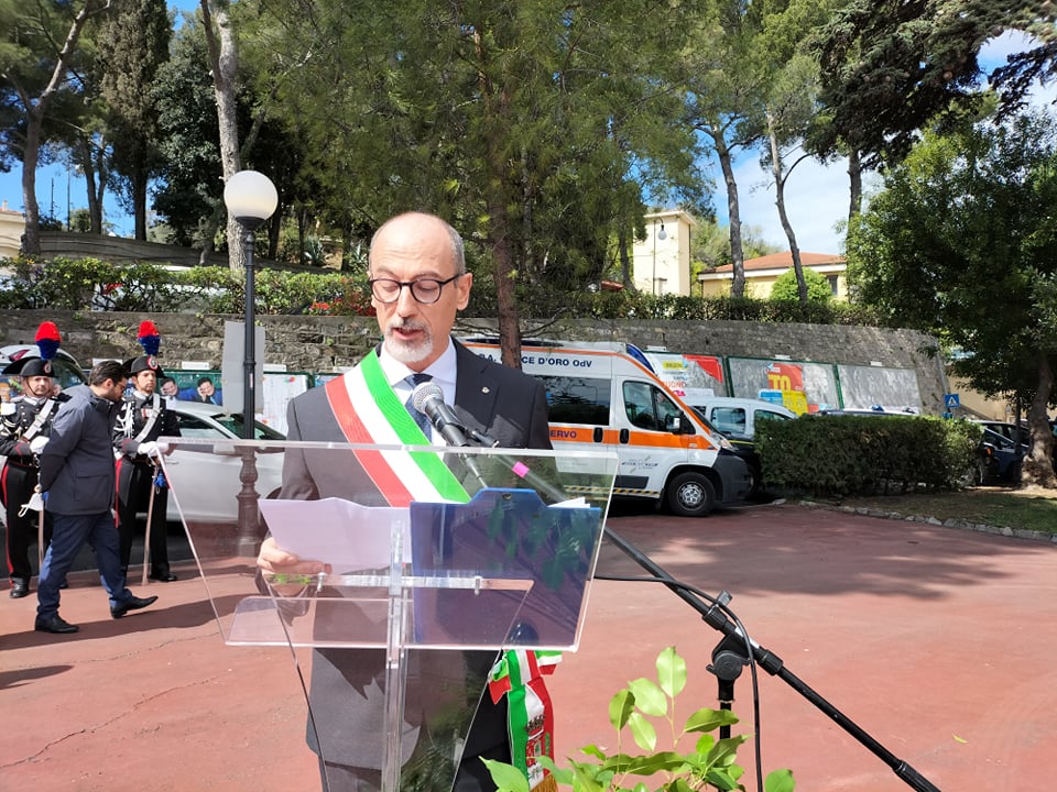 La manifestazione è terminata in Piazza della Vittoria con l’alzabandiera, gli onori ai caduti e la benedizione del parroco di Cristo Re Gianpiero Serrato. Successivamente l’orazione del professor Vittorio Coletti, mentre il vicesindaco Giuseppe Fossati ha portato i saluti della città. Assente in quanto positivo al Covid il sindaco Claudio Scajola.