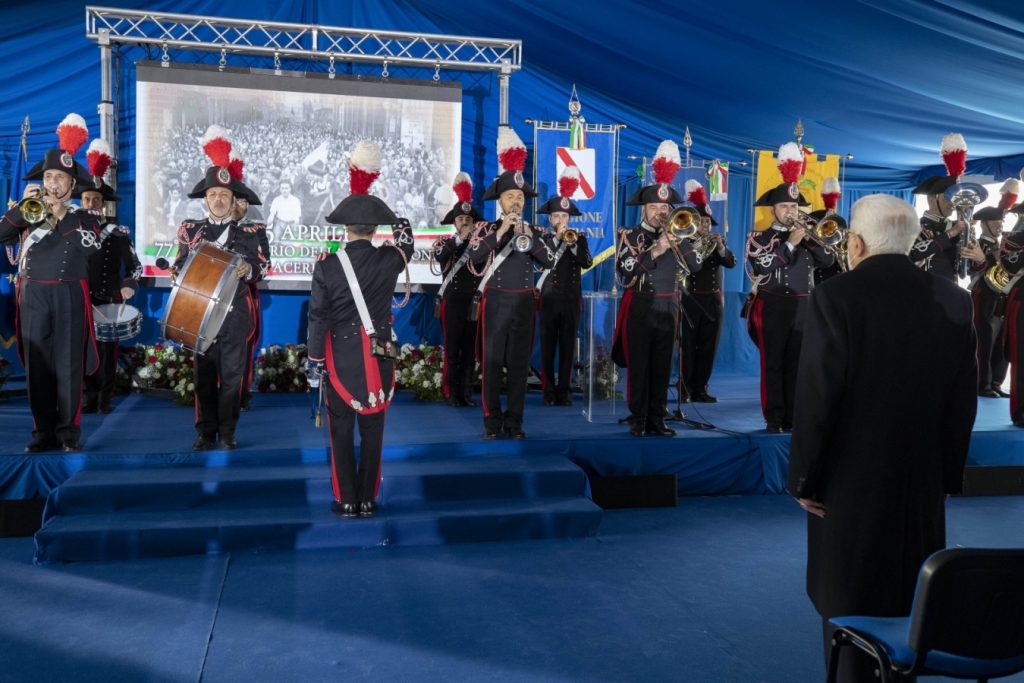 Ad Acerra, in occasione del 77° Anniversario della Liberazione, il Presidente della Repubblica Sergio Mattarella, dopo aver deposto una corona d’alloro al cippo commemorativo di piazza Soriano, ha tenuto un discorso durante la cerimonia di celebrazione.