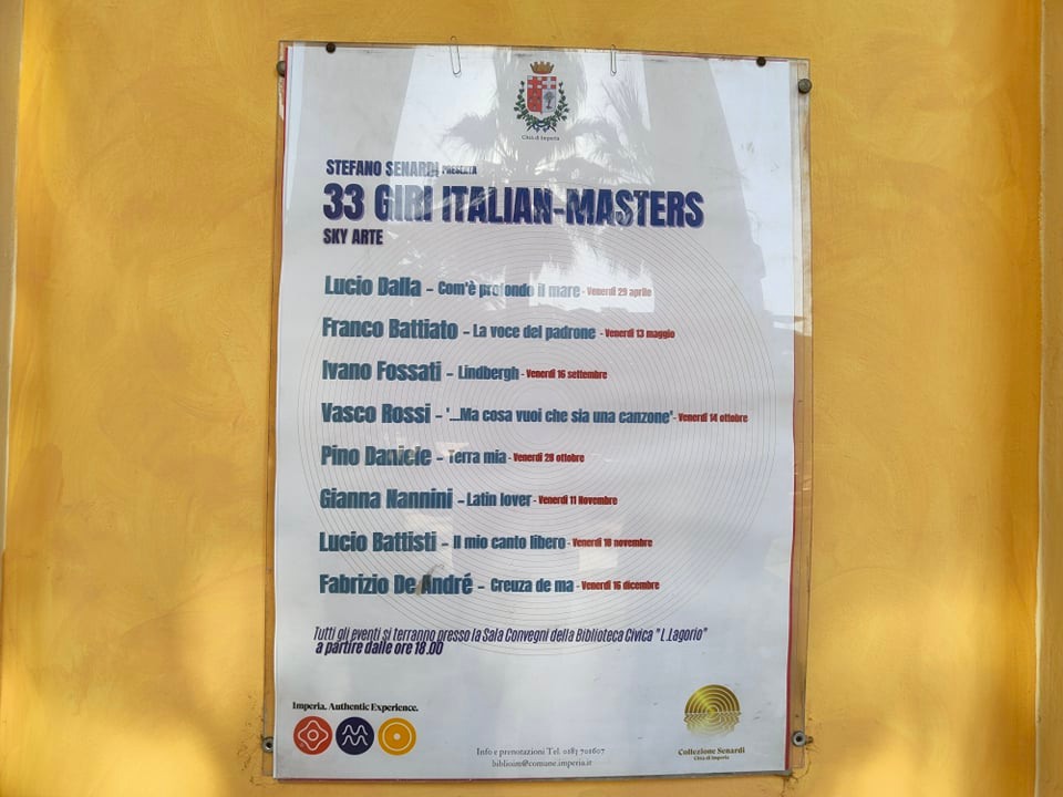 Ha preso il via questo pomeriggio, presso la sala convegni della biblioteca Lagorio di Imperia, il primo appuntamento della rassegna “33 giri/ Italian Masters – incontri d’autore“, sotto la direzione artistica di Stefano Senardi.