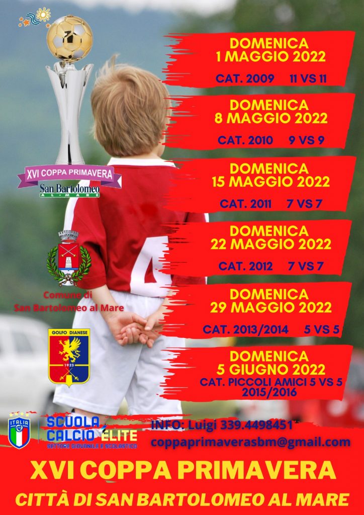 Coppa Primavera si svolge presso il Campo Sportivo di San Bartolomeo al Mare ed è organizzata dalla Pol. Golfo Dianese 1923