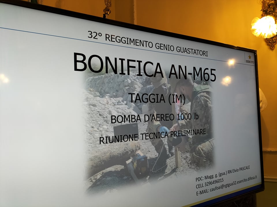 Nel corso dell’incontro, a cui hanno partecipato tutti gli Enti coinvolti, l’Esercito Italiano, gli Artificieri, i Sindaci dei comuni interessati, le forze dell’ordine, l’Asl, la Croce Rossa, la Protezione Civile, la Regione Liguria, è stato illustrato il piano di intervento per la bonifica in sicurezza dell’ordigno in questione.