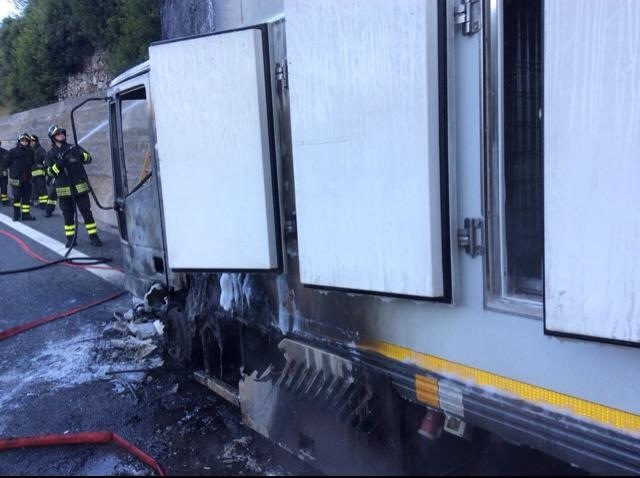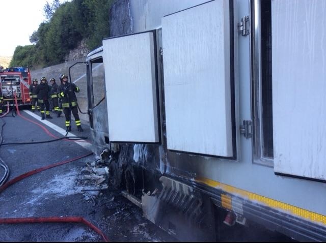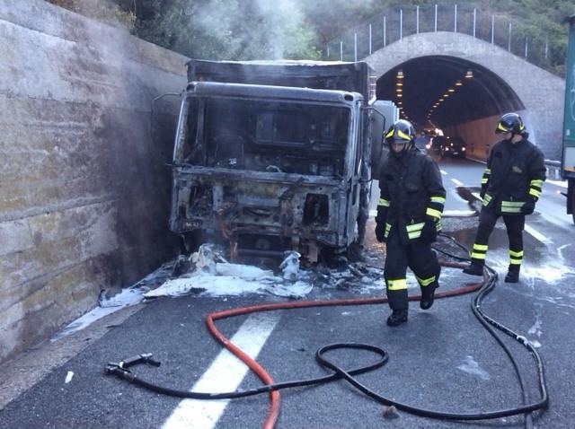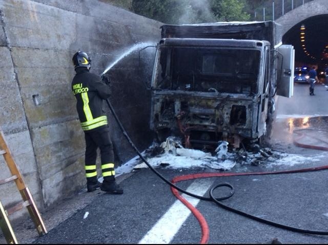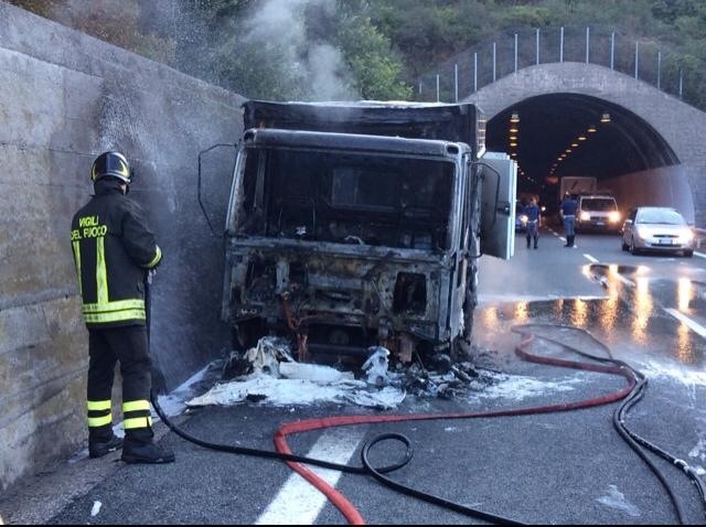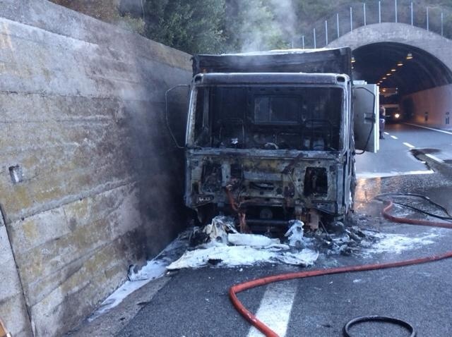 Imperia – Un altro camion in fiamme sull’autostrada dei Fiori all’altezza di Cipressa. Questa mattina, alle 7 circa, un furgone frigo ha preso fuoco all’inizio del cavalcavia, nella stessa zona in cui, meno di una settimana fa, è andato distrutto dalle fiamme un camion cisterna che conteneva pellet ma questa volta il furgone viaggiava nell’opposto senso di marcia. L’autista, un ingauno di circa 50 anni P.E., è rimasto incolume. Il mezzo ha preso fuoco all’interno della galleria e fortunatamente l’autista è riuscito ad uscire dalla galleria e a chiamare i soccorsi. Sul posto sono subito accorsi i vigili del fuoco che hanno domato le fiamme in poco più di mezz’ora.Sul posto Polizia Stradale, mezzi dell’Autostrada dei Fiori e Polizia. L’autostrada è percorribile a senso alternato grazie all’intervento della polizia stradale.
