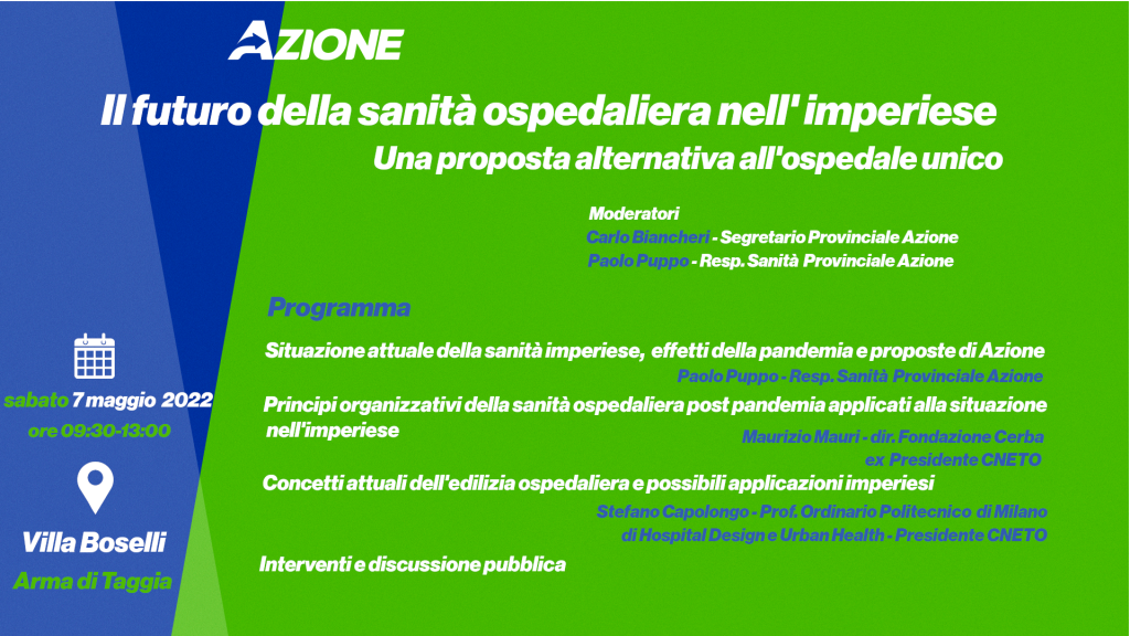 Questa mattina ad Arma di Taggia, a Villa Boselli, su iniziativa di Azione, si è svolto un convegno incentrato sulle possibili alternative alla realizzazione del nuovo ospedale unico provinciale.