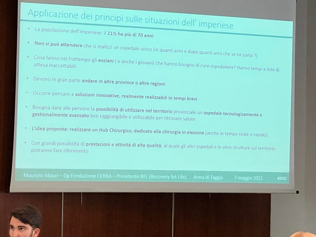 Di ospedale unico se ne parlava già nel 2012 quando dirigevo l’Urologia di Sanremo. Attualmente non sono nemmeno cominciati gli espropri e non c’è nemmeno un progetto esecutivo. E lo sappiamo tutti quanto ci vuole per fare un ospedale. Anche facendolo prima, 15 anni è il minimo sindacale.”