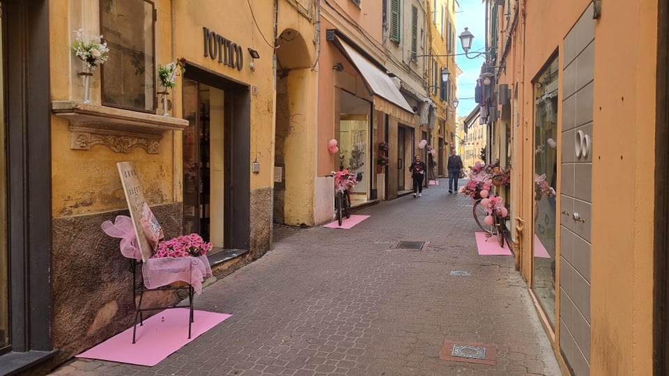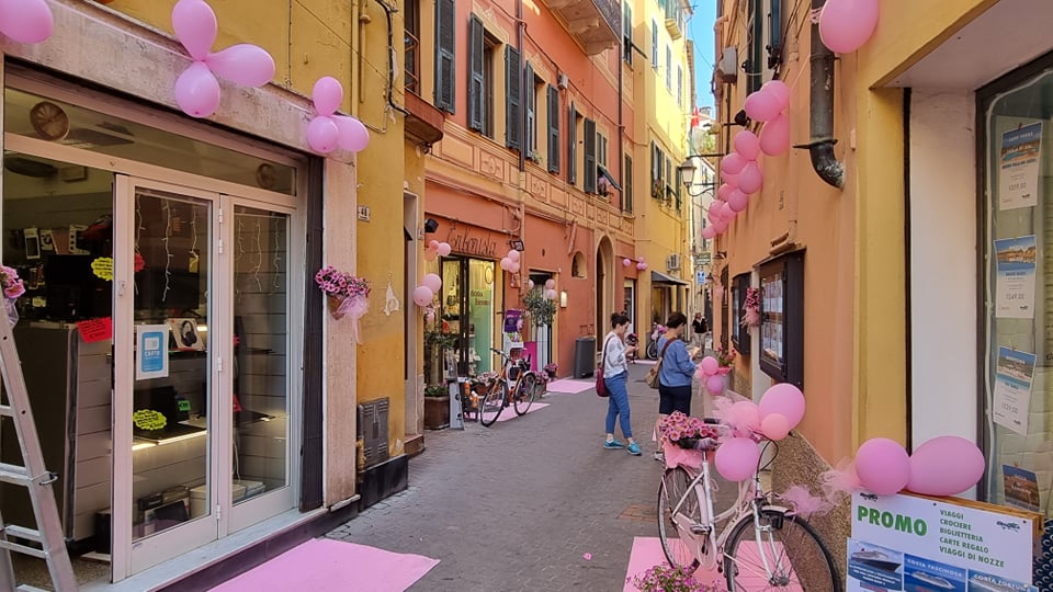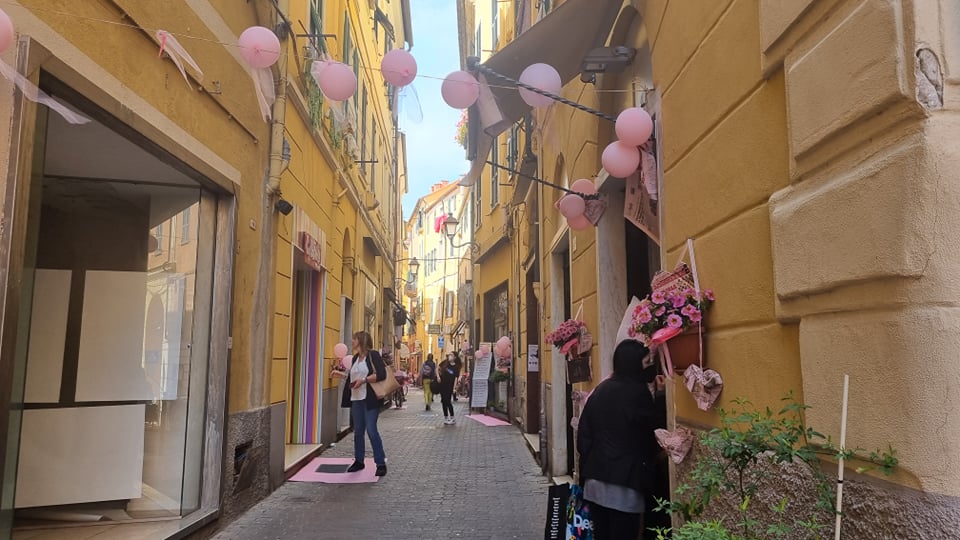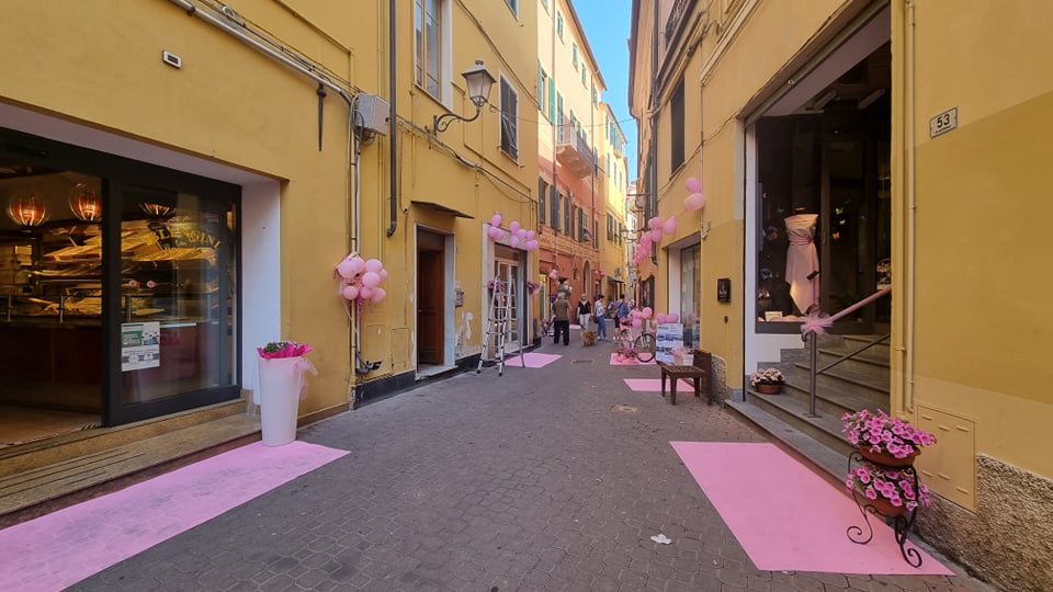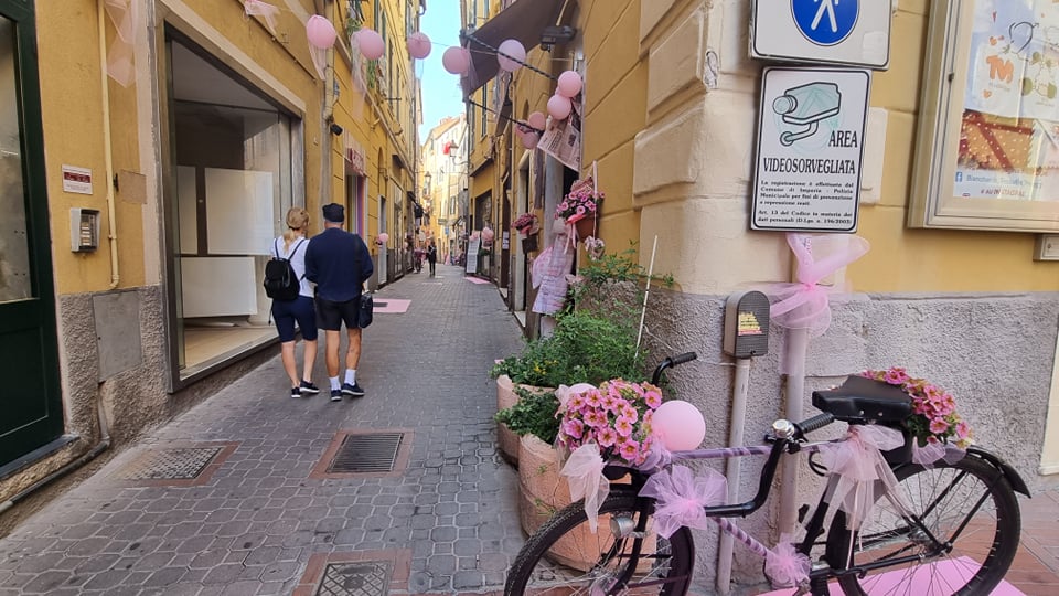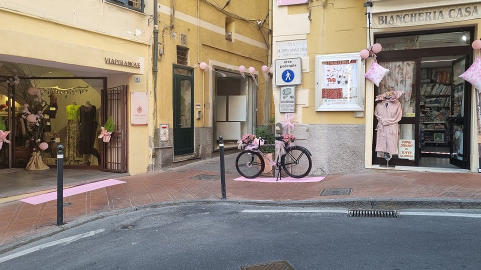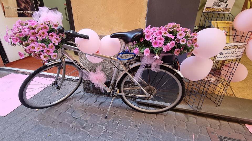 Nuova iniziativa da parte dei commercianti di via Ospedale, nel centro storico di Oneglia. L’intera via, infatti, è stata addobbata a tema, con biciclette di proprietà degli stessi commercianti e palloncini rosa, in vista del passaggio del Giro d’Italia previsto a Imperia nella giornata di venerdì, 20 maggio, a partire dalle ore 14.