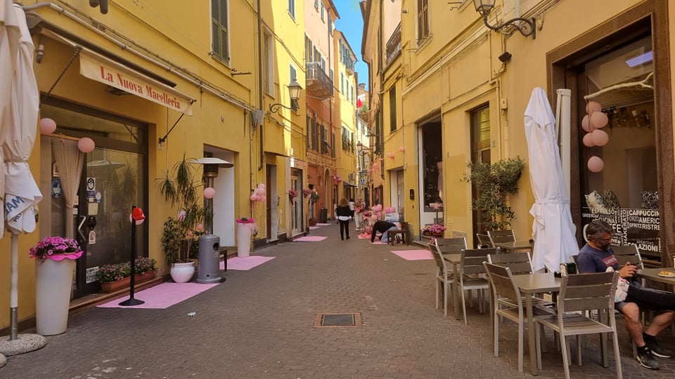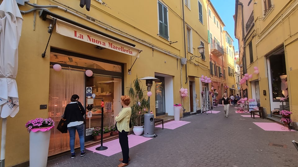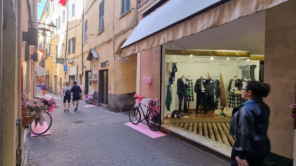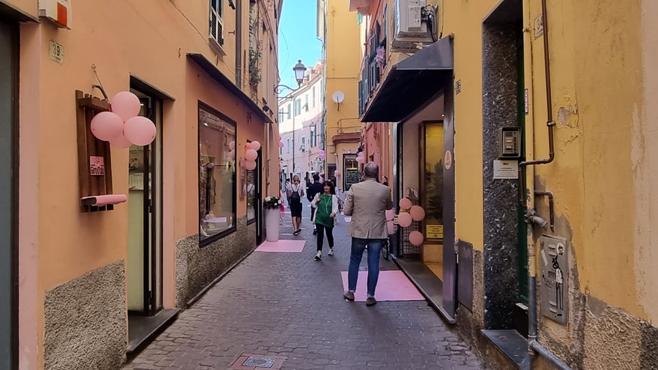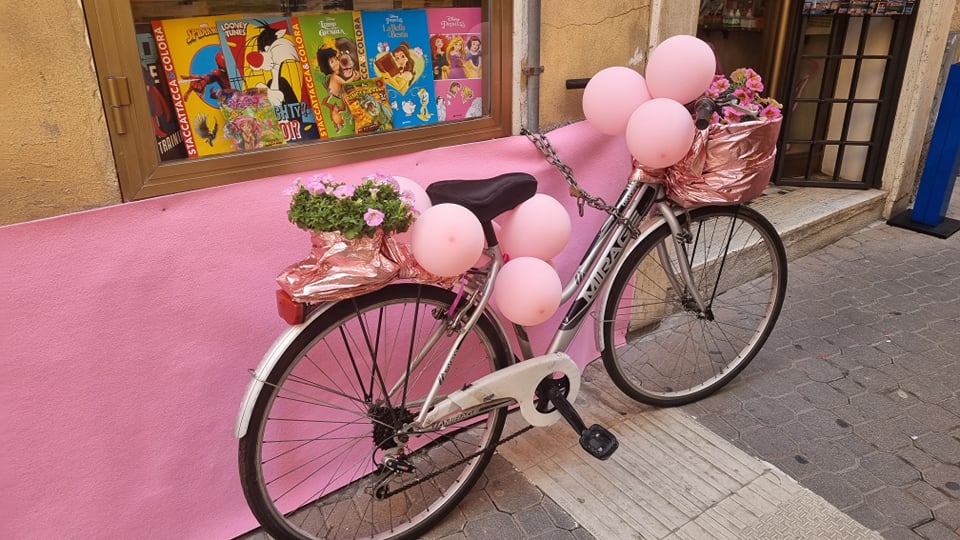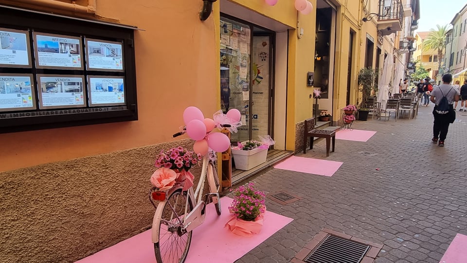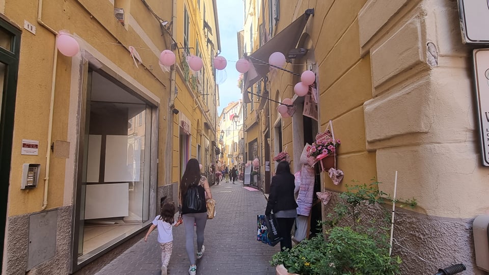 Nuova iniziativa da parte dei commercianti di via Ospedale, nel centro storico di Oneglia. L’intera via, infatti, è stata addobbata a tema, con biciclette di proprietà degli stessi commercianti e palloncini rosa, in vista del passaggio del Giro d’Italia previsto a Imperia nella giornata di venerdì, 20 maggio, a partire dalle ore 14.