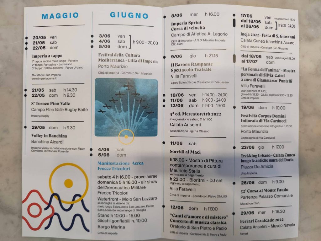Tra i principali eventi in programma tra maggio a giugno, oltre alle Frecce Tricolori, la tradizionale Festa di San Giovanni, l’Infiorata di via Carducci e il raduno delle Ferrari (“Ferrari Cavalcade 2022”) in Calata Anselmi. L’8 giugno riaprirà Villa Grock, mentre il 20 giugno è prevista la riapertura del Museo Navale, con il Planetario. Problemi, invece, con l’Amerigo Vespucci che, come spiegato dal Sindaco Scajola, non potrà attraccare nel porto di Oneglia. “Cercheremo di trovare il modo per renderla visitabile” ha aggiunto il primo cittadino.