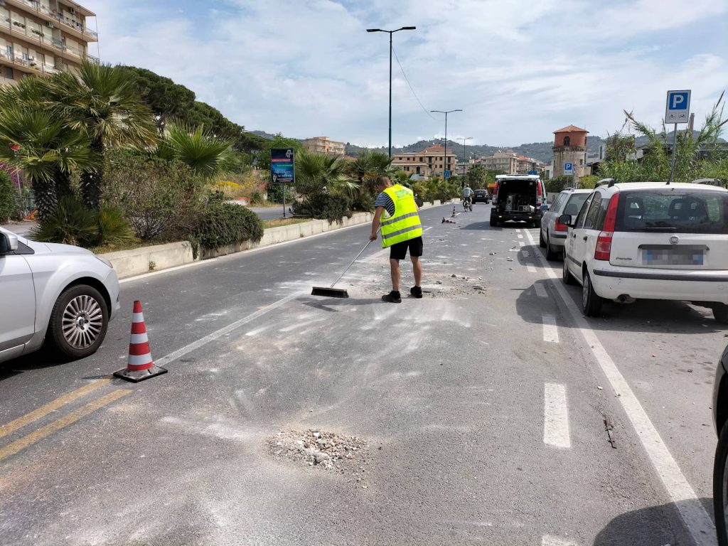 Imperia: autocarro perde pietre sul Lungomare Vespucci