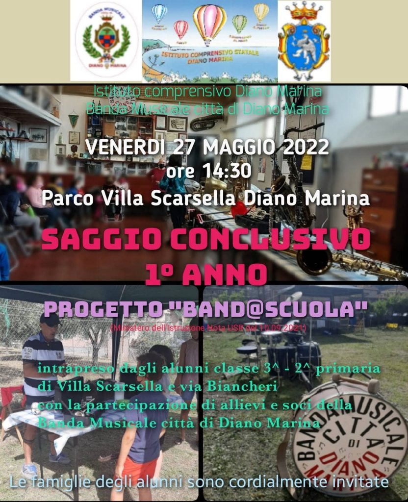Venerdì 27 maggio alle ore 14:30 presso il parco di Villa Scarsella a Diano Marina si terrà il saggio finale del progetto Band@scuola.
