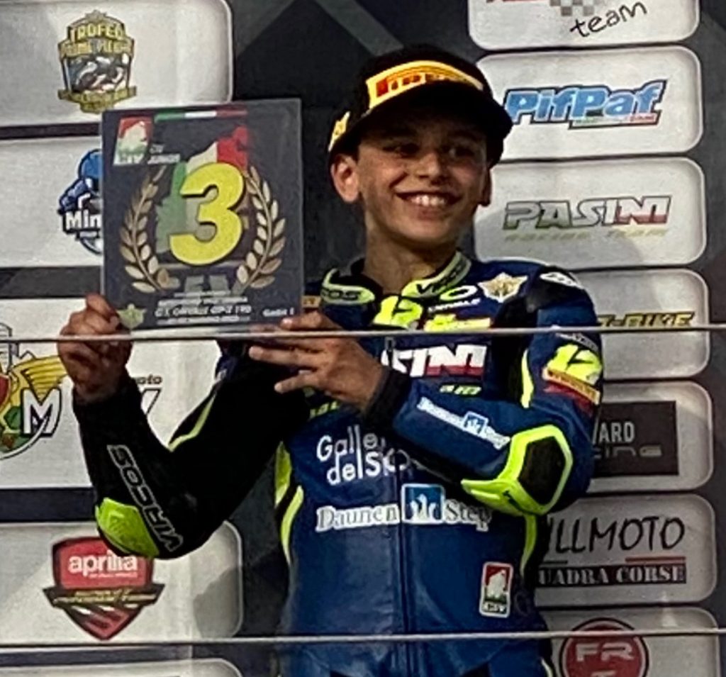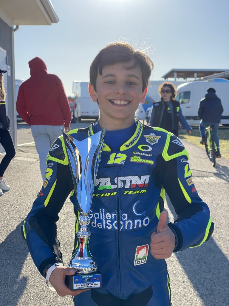 Mario Di Mario, giovane pilota imperiese, figlio d’arte il papà è stato compagno di squadra di Valentino Rossi agli esordi a metà degli anni 90, è impegnato nel campionato Italiano SUPERMOTO cat Junior, dove ha conquistato il secondo posto nella prima prova.