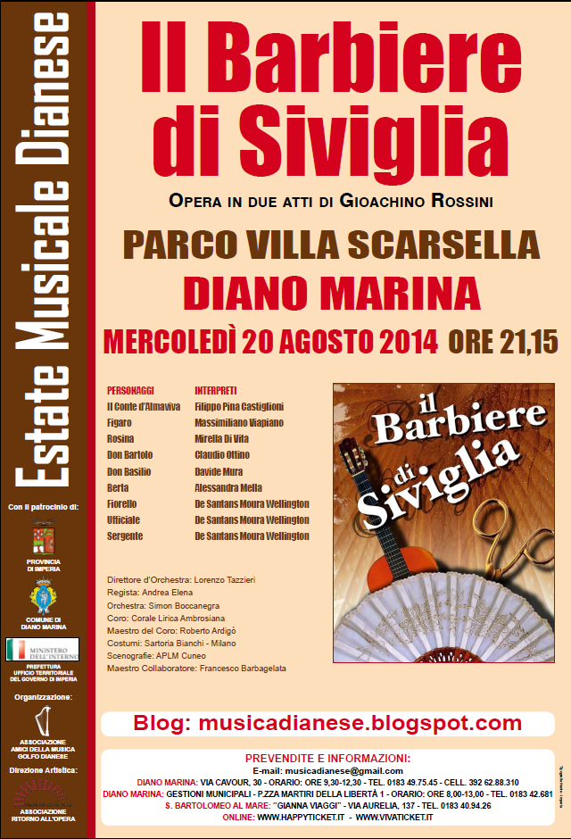 La rassegna proseguirà mercoledì 20 agosto alle 21.15 con “Il Barbiere di Siviglia” opera in due atti di Gioacchino Rossini