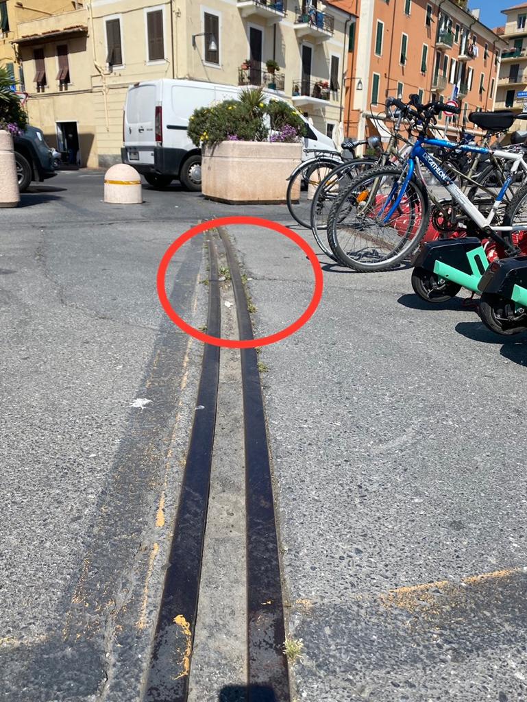 “Dopo aver percorso in sella alla mia bicicletta il molo in via Calata Gian Battista Cuneo – spiega Liparoti nella segnalazione al Comune e al Comando di Polizia Municipale – mi dirigevo verso piazza Edmondo De Amicis, ma alcuni metri prima di immettermi nella piazza, nei pressi del posteggio delle biciclette e dei monopattino a noleggio, improvvisamente cadevo a terra. Nell’immediatezza mi rendevo conto che la caduta era stata determinata dalla perdita di equilibrio per essere entrato con la ruota dentro all’insidiosa rotaia, a prima vista impercepibile perchè ben mimetizzata dai colori e dalla conformazione del manto stradale e che resta in quel punto sprofondata nell’asfalto senza copertura. Potevo inoltre osservare che la menzionata insidia non era stata segnalata nè preclusa al transito. A terra sono stato accudito da alcuni passanti, che, oltre a darmi assistenza, mi riferivano che non ero il primo a cadere per colpa delle vecchie rotaie. Non chiedevo l’intervento dell’ambulanza in quanto preferivo chiamare mio nipote presente nella zona che giungeva subito dopo. Rientrato in casa mettevo un po’ di ghiaccio, pensando di alleviare il dolore, ma dopo una giornata di riposo, oltre ad aumentare il dolore si gonfiava anche il polso, così decidevo di recarmi al Pronto Soccorso di Imperia dove dalle lastre si evidenziava: “frattura epifisi distale del radio di sx”, con prognosi di 30 giorni. Preciso che non era mia abitudine effettuare il suddetto percorso, ragione per la quale non conoscevo le condizioni di dissesto dell’anzidetto tratto. Pertanto chiedo il risarcimento per i danni subiti”.
