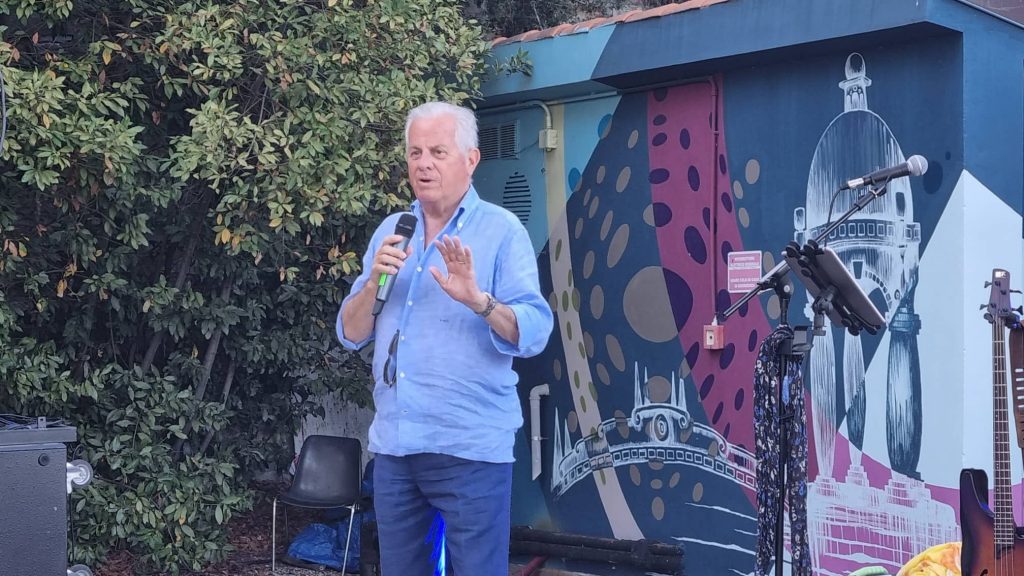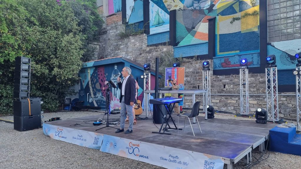 “Dopo due anni di silenzio forzato dovuto alla pandemia Covid, la Sorridi Con Pietro è voluta ritornare a diffondere il messaggio di solidarietà verso la terapia palliativa domiciliare. Il nostro progetto principale si chiama ‘Diamo qualità alla vita’. Grazie alla disponibilità del Comune di Imperia abbiamo approfittato di questa splendida location per unirci insieme all’amico Mauricio che si è prestato a portare qua alcune sue opere per un vernissage che arricchirà la serata. Un format diverso alla nostra sensibilizzazione sul territorio per quanto concerne il nostro progetto di terapia palliativa in età pediatrica.